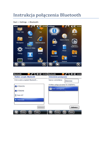 Instrukcja połączenia Bluetooth Start -> Settings - > Bluetooth: WF-Mag Mobile 2 -> ustawienia dla drukarki termicznej (szerokość 4”):