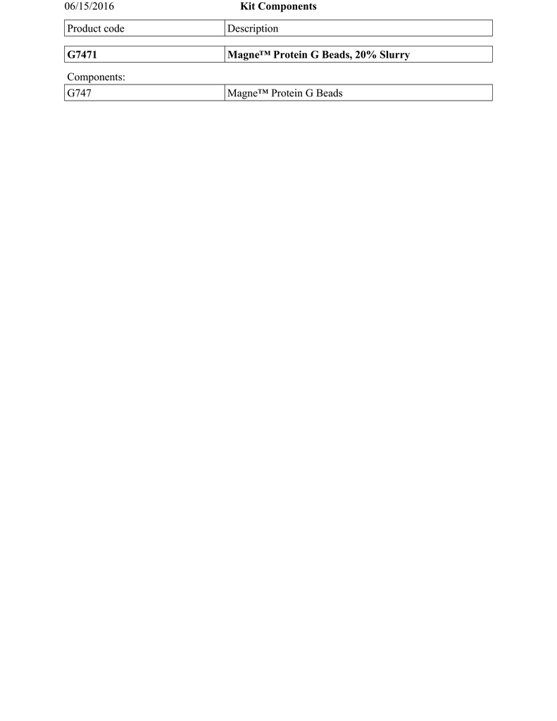 Kit Components 06/15/2016 Product code Description