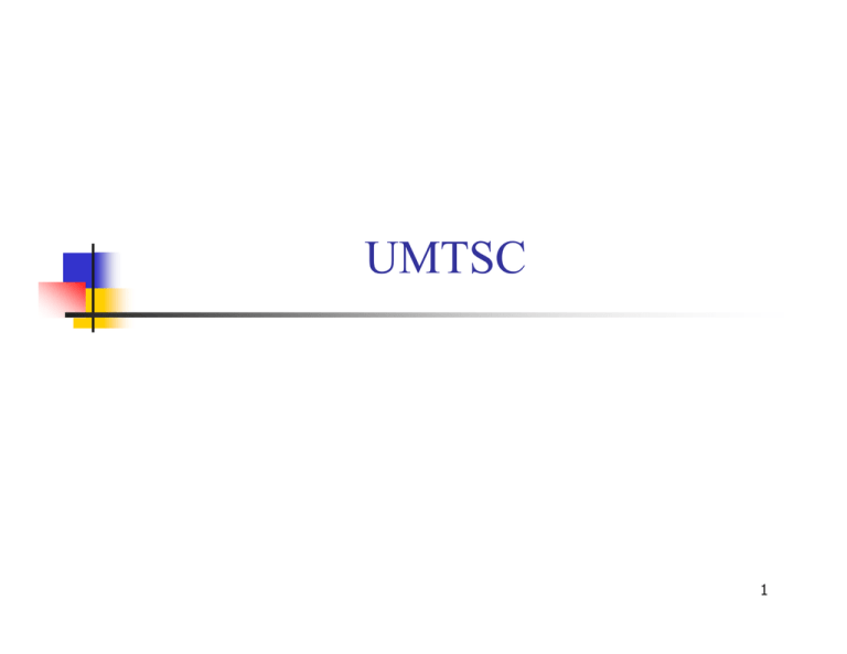 UMTSC 1 IMT-2000 The International Telecommunications UnionRadio communications (ITU-R) opracowało specyfikacje systemu 3G, mające na celu ułatwienie stworzenia globalnej bezprzewodowej infrastruktury obejmującej naziemne i sateliterne systemy zapewniającej trwały mobilny dostęp do sieci publicznych i prywatnych IMT-2000 jest ogólną nazwą dla wszystkich systemów 3G Włącza on nowe możliwości oraz zapewnia ewolucyjne przejście z istniejących bezprzewodowych systemów 2G 2 Droga do 3G 1G: analogowa 2G : 1-sza cyfrowa mobilna telefonia 2.5G: przejście od 2G do 3G 3G standard: IMT-2000 3 3G & Przyszłe Systemy Bezprzewodowe 10,000,000,000 4G 1,000,000,000 100,000,000 bps 3.5G 10,000,000 3G 1,000,000 GPRS 100,000 2G 10,000 1,000 100 1960 1970 1980 1990 2000 2010 4 IMT-2000 Kluczowe własności Alokacja międzynarodowego spektrum Radiowe interfejsy Harmonizowane systemy 3G UMTS UTRAN, USRAN Kanały w UTRAN 5 3G: oczekiwania Ulepszona cyfrowa komunikacja głosowa Większe spektrum – wieksza prędkość transmisji danych Szybkie usługi oparte na transmisji pakietów, takie e-mail, SMS i szerokopasmowy dostęp do Internetu Sądzi się też, że abonenci będą oczekiwać: Usług lokalizacyjnych Interaktywnych gier Video na żądanie Monitorowanie mieszkań i domów Oraz prawdopodobnie wielu innych rzeczy 6 Kluczowe własności Wysoki stopień podobieństwa rozwiązań konstrukcyjnych na całym świecie Kompatybilność usług w IMT-2000 oraz w stałych sieciach Wysoka jakość Mały terminal do używania na całym świecie, bez względu na to czy są to komórki pico, micro, macro, czy satelitarne Możliwości roamingu na całym świecie Możliwości aplikacji multimedialnych oraz szeroki zakres usług i terminali 7 3G: oferowane usługi Jakość głosu porównywalna do jakości oferowanej prze publiczną sieć telefoniczną 144 Kbits - użytkownicy szybkiego ruchu samochodowego 384 Kbits - piesi lub wolno poruszający się na małych obszarach Aż do 2 Mbits- stałe zastosowania, jak np. w biurze Symetryczna/asymetryczna transmisja danych Realizacja serwisów opartych zarówno na transmisji danych jak i komutacji pakietów jak też komutacji obwodów, takich jak ruch sieciowy oparty na Internet Protocol (IP) czy wideo w czasie rzeczywistym 8 Technologie (standardy) 3G ma znaczną przewagę nad innymi cyfrowymi standardami, takimi jak: Technologie 3G: GSM (Global System for Mobile) czy IS-136 TDMA używanym przede wszystkim w Ameryce Północnej WCDMA or UMTS-FDD (Universal Mobile Telecommunications System Frequency Division Duplex)---Direct Spread cdma2000 - 1x-EvDO/EvDV---Multi carrier UMTS – TDD (Time Division Duplex) or TD-SCDMA (Time Division Synchronous Code Division Multiple Access) ---Time Code Technologie 4G: Digital Audio Broadcast (DAB) and Digital Video Broadcast (DVB) for wide area broadcasting Local Multipoint Distribution System (LMDS) Microwave Multipoint Distribution System (MMDS) 9 3G: standardy Standardy Europa: UMTS (Universal Mobile Telecommunications System) (W-CDMA) Japonia: W-CDMA USA: cdma2000 10 Środowisko pracy systemu UMTS 11 3G: integracja dotychczasowych systemów komunikacji mobilnej 12 Rozwój nowych usług •informacja i rozrywka dla danego terenu •mobilne biuro (e-maile, wideo-konferencje, sprzedaż) •bezprzewodowy dom (obsługa i monitoring ) •samochód w łączności ze światem (aktualne inf. na drodze) •usługi lokalizacyjne (GPS, sprawniejsza nawigacja) •dynamiczna selekcja i definiowanie profilu usług, •zdalne zamawianie produktów i usług (reklamy, szyb.przesył) •m-banking (płatności poprzez terminale) •„mikropłatności” (połączenia interaktywne, bezpieczeństwo, personalizacja) 13 Szybkości transmisji w 2.5G i 3G W technikach szerokopasmowe (WCDMA): CDMA (Code Division Multiple Access) i TDMA (Time Division Multiple Access) Taki typ interfejsu radiowego umożliwia przyznanie całego dostępnego pasma każdej z komórek sieci, bez koniecznośc rozdziału częstotliwości między komórki (i ograniczenia detalicznego transferu). Każdy użytkownik otrzymuje indyw.kod (kodowy ciąg rozpraszający) Szybka transmisja Danych (3G Internet) 14 Alokacja międzynarodowego spektrum (ITU-R) Zakresy podstawowe: 1885 – 2025 MHz i 2110 – 2200 MHz (1992 r) 1920 – 1980 MHz i 2110 – 2170 MHz w trybie FDD 1885 – 1920 MHz i 2010 – 2025 MHz w trybie TDD Rozszerzenia zakresów (2000 r) Te, które ustalono w 1992 r Używane zakresy 2 G (w tym GSM 900, 1800, i 1900) oraz 698-806 MHz, 2500-2690 i 2700-2900 od 2005 r 15 Alokacja międzynarodowego spektrum Obecnie nie ma jednego ustalonego, powszechnie dostępnego spektrum dla 3G; jest to kwestią negocjacji Raczej kilka zakresów niż jeden Ze względów praktycznych < 3GHz (2000 r); 5, 7 GHz (2003 r) Proponowane zakresy: USA: 698-960 MHZ, 1710-1885 MHz, 2500-2690 MHz Kraje Azji i Pacyfiku – podobnie jak USA Ameryka Centralna i Południowa: 2,5 GHz, 1.7 GHz Kanada: 1.7 GHz Europa: rozpatruje mozliwość zwrotu szeregu używanych zakresów 16 Alokacja międzynarodowego spektrum 17 IMT-2000: interfejsy radiowe IMT Unpaired Spectrum Paired Spectrum IMT-DS UMTS-FDD (WCDMA) Direct spread IMT-MC CDMA-2000 (1x-EvDO/DV) Multi carrier CDMA IMT-TC UMTS-TDD (TD-SCDMA) Time code TDMA IMT-SC UWC-136 (EDGE) Single carrier IMT-FT DECT Freq. time FDMA 18 Harmonizowane systemy 3G Usługi bazujace na wysokiej prędkości danych, włączając w to aplikacje internetowe i intranetowe Zastosowania głosowe i niegłosowe Globalny roaming Ewolucja na bazie systemów 2G ANSI-41 oraz GSM-MAP jako sieci rdzeniowe 19 Drogi ewolucji cdmaOne IS-95A cdmaOne IS-95B Cdma2000 1X Cdma2000 1xEV-DO Cdma2000 1xEV-DV TDMA IS-41 Core Network EDGE GSM WCDMA GPRS GSM Map Core Network 2G 2.5G 3G 20 MMS (Multimedia Messaging Service) Otwarta przemysłowa specyfikacja utworzona przez WAP forum Oparta na architekturze store & forward Istotne wzmocnienie obecnej usługi SMS: tekst, kolor, ikony, loga, klipy d