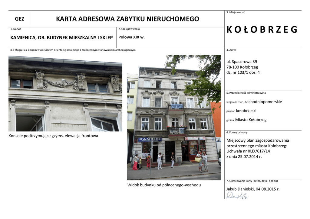 karta adresowa - Baza Zabytków Miasta Kolobrzeg