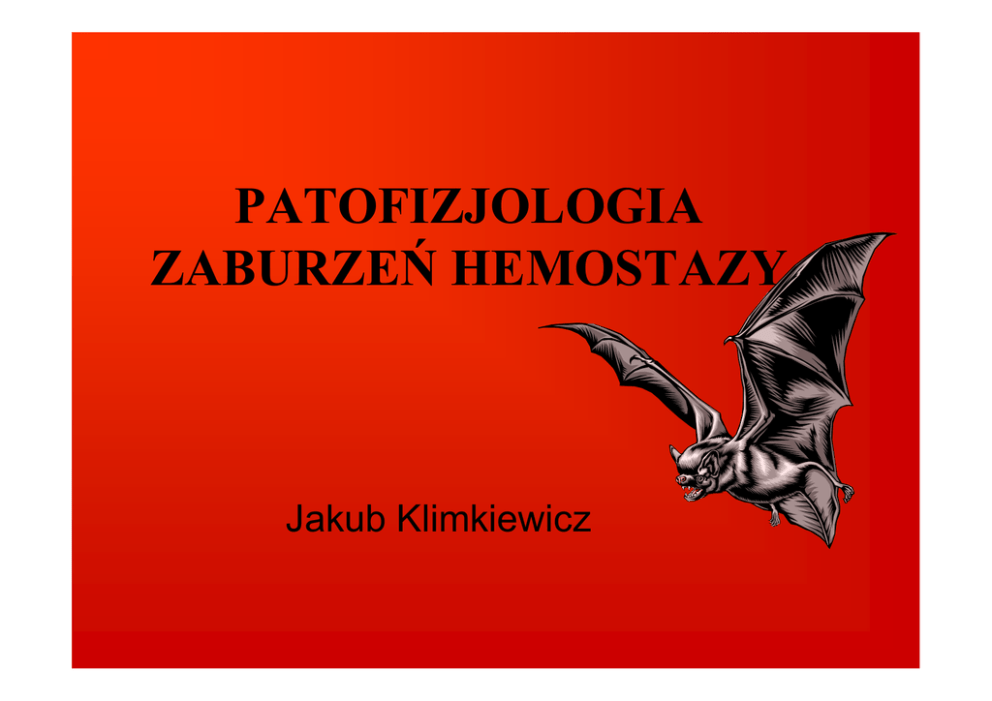 PATOFIZJOLOGIA ZABURZEŃ HEMOSTAZY Jakub Klimkiewicz HEMOSTAZA CAŁOŚĆ PROCESÓW ZWIĄZANYCH Z UTRZYMANIEM KRWI W STANIE PŁYNNYM W NACZYNIACH KRWIONOŚNYCH ORAZ HAMOWANIEM KRWAWIENIA W MIEJSCU USZKODZENIA ŚCIANY NACZYNIOWEJ PRAWIDŁOWA HEMOSTAZA ZALEŻY OD FUNKCJONOWANIA • • • • • ŚRÓDBŁONKA NACZYŃ PŁYTEK KRWI ŚCIANY NACZYNIOWEJ ODRUCHU NERWOWEGO BIAŁEK PROKOAGULACYJNYCH OSOCZA • UKŁADU FIBRYNOLITYCZNEGO • OSOCZOWYCH ANTYKOAGULANTÓW HEMOSTAZA • SKURCZ NACZYŃ I PŁYTKI KRWIHEMOSTAZA PIERWOTNA • CZYNNIKI KRZEPNIĘCIAHEMOSTAZA WTÓRNA DEFINICJA SKAZY KRWOTOCZNEJ • SKAZA KRWOTOCZNA TO STAN, W KTÓRYM NA SKUTEK NIEPRAWIDŁOWOŚCI SKŁADNIKÓW BĄDŹ ETAPÓW HEMOSTAZY DOCHODZI DO NADMIERNEGO KRWAWIENIA PO URAZACH I USZKODZENIACH NACZYŃ LUB DO SAMOISTNYCH KRWAWIEŃ BEZ PRZERWANIA CIĄGŁOŚCI NACZYNIA KRWIONOŚNEGO SKAZY KRWOTOCZNE • • PIERWOTNE= WRODZONE WTÓRNE= NABYTE SKAZY KRWOTOCZNE • • • PŁYTKOWE OSOCZOWE NACZYNIOWE SKAZY KRWOTOCZNE NACZYNIOWE WRODZONE • CHOROBA RENDU-OSLERA-WEBERA • ZESPÓŁ MARFANA • ZESPÓŁ EHLERSA-DANLOSA SKAZY KRWOTOCZNE NACZYNIOWE NABYTE • • • • POLEKOWE POINFEKCYJNE SZKORBUT ZESPÓŁ SCHONLEINA-HENOCHA OGÓLNE ZASADY DIAGNOZOWANIA SKAZ KRWOTOCZNYCH • WYWIAD • BADANIE PRZEDMIOTOWE • LABORATORYJNE BADANIA PODSTAWOWE • LABORATORYJNE BADANIA SPECJALISTYCZNE PODSTAWOWE BADANIA UKŁADU HEMOSTAZY • MORFOLOGIA KRWI OBWODOWEJ • CZAS KRWAWIENIA • CZAS KAOLINOWO-KEFALINOWY • CZAS PROTROMBINOWY BADANIA W SKAZACH NACZYNIOWYCH • BADANIA KOAGULOLOGICZNE W NORMIE • MORFOLOGIA W NORMIE • TEST OPASKOWY • BIOPSJA SKÓRY SKAZY KRWOTOCZNE PŁYTKOWE • ILOŚCIOWE • JAKOŚCIOWE ZALEŻNOŚĆ CZASU KRWAWIENIA OD LICZBY PŁYTEK Platelet count (x 1000) 400 350 300 250 200 150 100 50 0 3,5 4 4,5 5 5,5 7 Minutes 9 12 15 25 30 SKAZY KRWOTOCZNE PŁYTKOWE ILOŚCIOWE ZALEZNE OD PRODUKCJI • • • • CYTOSTATYKI, RADIOTERAPIA NARAŻENIE NA ŚRODKI CHEMICZNE NIEDOBÓR WITAMINY B 12 +ALKOHOL PRZEWLEKŁE ZESPOŁY MIELOPROLIFERACYJNE • OSTRE BIAŁACZKI • ZAKAŻENIA WIRUSOWE SKAZY KRWOTOCZNE PŁYTKOWE ILOŚCIOWE NIEZALEZNE OD PRODUKCJI IMMUNOLOGICZNE • IMMUNOLOGICZNA PLAMICA MAŁOPŁYTKOWA • POLEKOWA PLAMICA MAŁOPŁYTKOWA • POTRANSFUZYJNA PLAMICA MAŁOPŁYTKOWA • POINFEKCYJNA PLAMICA MAŁOPŁYTKOWA SKAZY KRWOTOCZNE PŁYTKOWE ILOŚCIOWE NIEZALEZNE OD PRODUKCJI NIEIMMUNOLOGICZNE • SZTUCZNE ZASTAWKI, KRĄŻENIE POZAUSTROJOWE • POALKOHOLOWA MAŁOPŁYTKOWOŚĆ • HIPERSPLENIZM • ZESPÓŁ HEMOLITYCZNOMOCZNICOWY • DIC SKAZY KRWOTOCZNE PŁYTKOWE CZYNNOŚCIOWE PIERWOTNE • CHOROBA VON WILLEBRANDTA • TROMBASTENIA GLANZMANA SKAZY KRWOTOCZNE PŁYTKOWE CZYNNOŚCIOWE NABYTE • • • • • • • PRZEWLEKŁE ZESPOŁY MIELOPROLIFERACYJNE SZPICZAK MAKROGLOBULINEMIA MOCZNICA MARSKOŚĆ WĄTROBY POLEKOWE ZABURZENIA CZYNNOŚCI PŁYTEK OPERACJE Z ZASTOSOWANIEM KRĄŻENIA POZAUSTROJOWEGO BADANIA W SKAZACH PŁYTKOWYCH • MORFOLOGIA Z ROZMAZEM • CZAS KRWAWIENIA WYDŁUŻONY • BADANIA KOAGULOLOGICZNE W NORMIE SKAZY KRWOTOCZNE OSOCZOWE WRODZONE • • • • HEMOFILIA A HEMOFILIA B NIEDOBÓR CZYNNIKA XI CHOROBA VON WILLEBRANDTA SKAZY KRWOTOCZNE OSOCZOWE NABYTE • NIEDOBÓR WITAMINY K • ZABURZENIA CZYNNOŚCI WĄTROBY • DIC • POLEKOWE BADANIA W SKAZACH OSOCZOWYCH • RÓŻNE ODCHYLENIA OD NORMY • NP. W HEMOFILII PRAWIDŁOWY CZAS KRWAWIENIA A PRZEDŁUŻONE CZASY KRZEPNIĘCIA OBJAWY KLINICZNE SKAZ KRWOTOCZNYCH NACZYNIOWYCH • PLAMICA • WYBROCZYNY • PODBIEGNIĘCIA RZADKO MASYWNE KRWAWIENIA ! OBJAWY KLINICZNE SKAZ KRWOTOCZNYCH PŁYTKOWYCH • MNOGIE WYBROCZYNY • DROBNE WYBROCZYNY W MIEJSCACH NIEWIELKICH URAZÓW • NADMIERNE KRWAWIENIA PO URAZACH • KRWAWIENIA Z BŁON ŚLUZOWYCH NIE MA MASYWNYCH KRWAWIEŃ DO TKANEK MIĘKKICH I JAM STAWOWYCH ! OBJAWY KLINICZNE SKAZ KRWOTOCZNYCH OSOCZOWYCH • KRWAWIENIA WTÓRNE PO ZABIEGACH • KRWAWIENIA Z NOSA ----------------------------------------------------------------------------------------------• KRWAWIENIA Z PĘPOWINY U NOWORODKÓW • KRWAWIENIA PODSKÓRNE • KRWAWIENIA DO MIĘŚNI • KRWAWIENIA DO STAWÓW DIC DISSEMINATED INTRAVASCULAR COAGULATION ROZSIANE WYKRZEPIANIE WEWNĄTRZNACZYNIOWE CZYNNIKI ETIOLOGICZNE DIC • WTARGNIĘCIE DO KRĄŻENIA CZYNNIKA TKANKOWEGO LUB INNYCH SUBSTANCJI O PODOBNEJ AKTYWNOŚCI • USZKODZENIE ŚRÓDBŁONKA NACZYŃ • BEZPOŚREDNIA AKTYWACJA CZYNNIKA X I PROTROMBINY • AKTYWACJA FIBRYNOLIZY Układ Punkty 0 >400 1 ≤400 ≤300 ≤200 ≤100 Moczowy Kreatynina (mcmol/l) ≤110 110-170 171-299 300-440 diureza ≤500ml/d >440 diureza<200ml/d Wątroba Bilirubina (mcmol/l) ≤20 20-32 33-101 102-204 >204 Krążenia Hipotensja Brak hipotens ji MAP <70mmH g Dopamina ≤ 5* Dobutamina w dowolnej dawce Dopamina >5* lub adrenalina ≤0.1* lub noradrenalina ≤0.1* Dopamina>15* lub adrenalina>0.1* lub noradrenalina >0.1* Krwiotwórcz y Liczba płytek krwi >150 tys ≤150tys. ≤100tys. ≤50tys. ≤20tys. Nerwowy Skala Glasgow 15 13-14 10-12 6-9 <6 Oddechowy PaO2/ FiO2 2 3 4 Test Result Prothrombin Time Slightly to grossly prolonged aPTT Variable Fibrinogen Usually low Thrombin time Usually prolonged Factor levels Variable Platelet Count Usually low RBC fragmentation Sometimes present Fibrin split products Usually present ZABURZENIA HEMOSTAZY PO URAZACH WIELONARZĄDOWYCH • HIPOKSJA I HIPERKAPNIA • UTRATA ELEMENTÓW ODPOWIEDZIALNYCH ZA HEMOSTAZĘ • ROZCIEŃCZENIE POZOSTAŁYCH W KRWIOOBIEGU ELEMENTÓW • HIPOTERMIA • ORAZ CO WYNIKA Z POPRZEDNICH SLAJDÓW DIC Przypadek 1 • Dziewięcioletni chłopiec • Wystąpiło u niego krwawienie w miejscu ekstrakcji zęba • Krwawienie rozpoczęło się dzień po zabiegu • Jego brat ma częste krwawienia z nosa, podobnie jak brat matki chłopców Przypadek 2 • 62 letnia chora • Dwa lata temu przeszła operację wszczepienia sztucznej zastawki • Zgłosiła się do lekarza z powodu wielkich siniaków na kolanach • Przyjmuje przewlekle leki ale nie pamięta ich nazw 