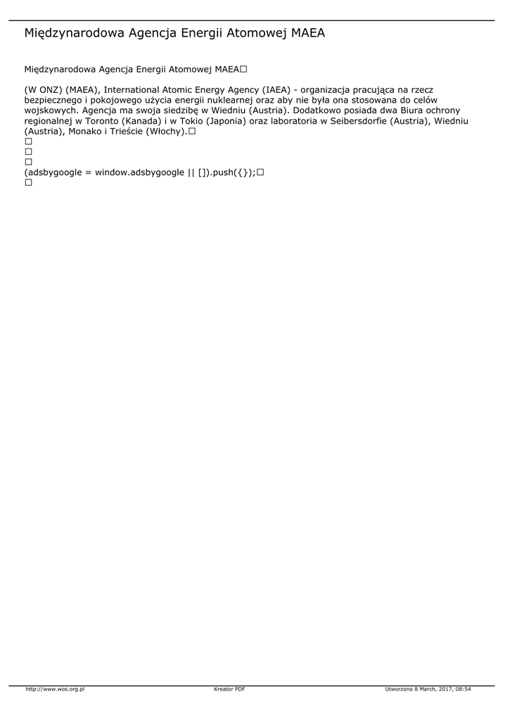 (W ONZ) (MAEA), International Atomic Energy Agency (IAEA) - organizacja pracująca na rzecz