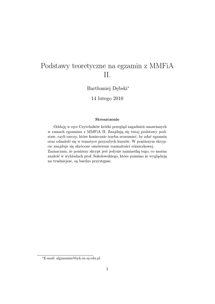 Podstawy teoretyczne na egzamin z MMFiA II.