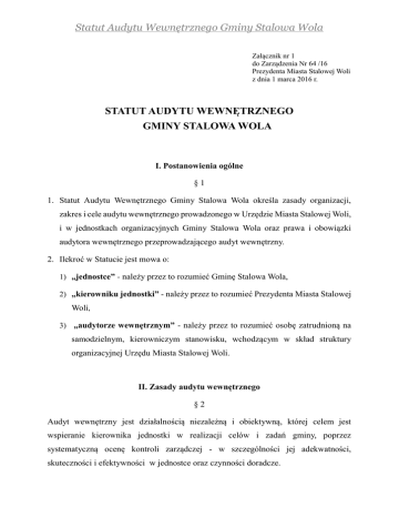 Statut Audytu Wewnętrznego Gminy Stalowa Wola