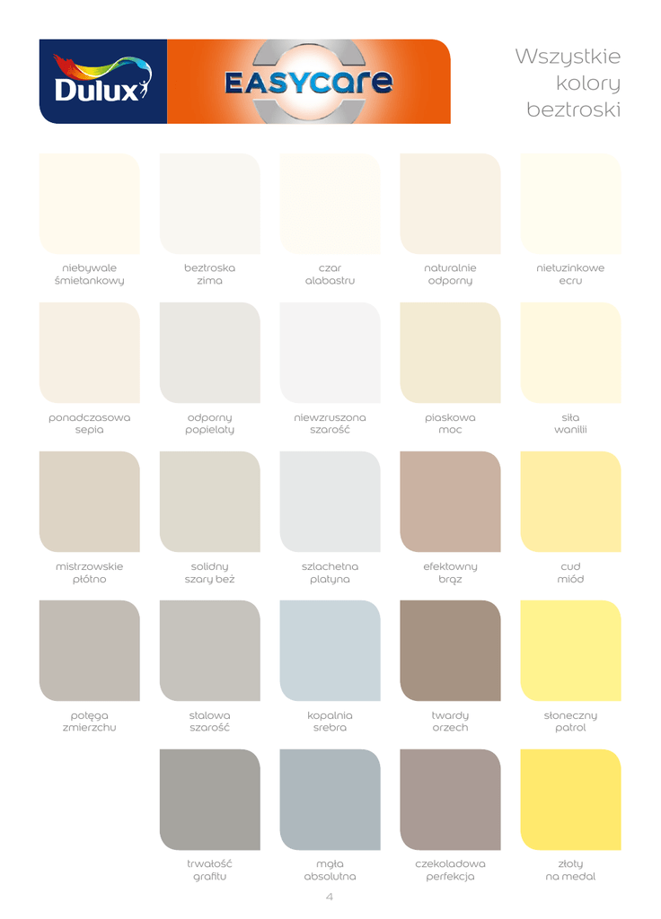 Wszystkie kolory beztroski niebywale śmietankowy beztroska zima czar alabastru naturalnie odporny nietuzinkowe ecru ponadczasowa sepia odporny popielaty niewzruszona szarość piaskowa moc siła wanilii mistrzowskie płótno solidny szary beż szlachetna platyna efektowny brąz cud miód potęga zmierzchu stalowa szarość kopalnia srebra twardy orzech słoneczny patrol trwałość grafitu mgła absolutna czekoladowa perfekcja złoty na medal 4