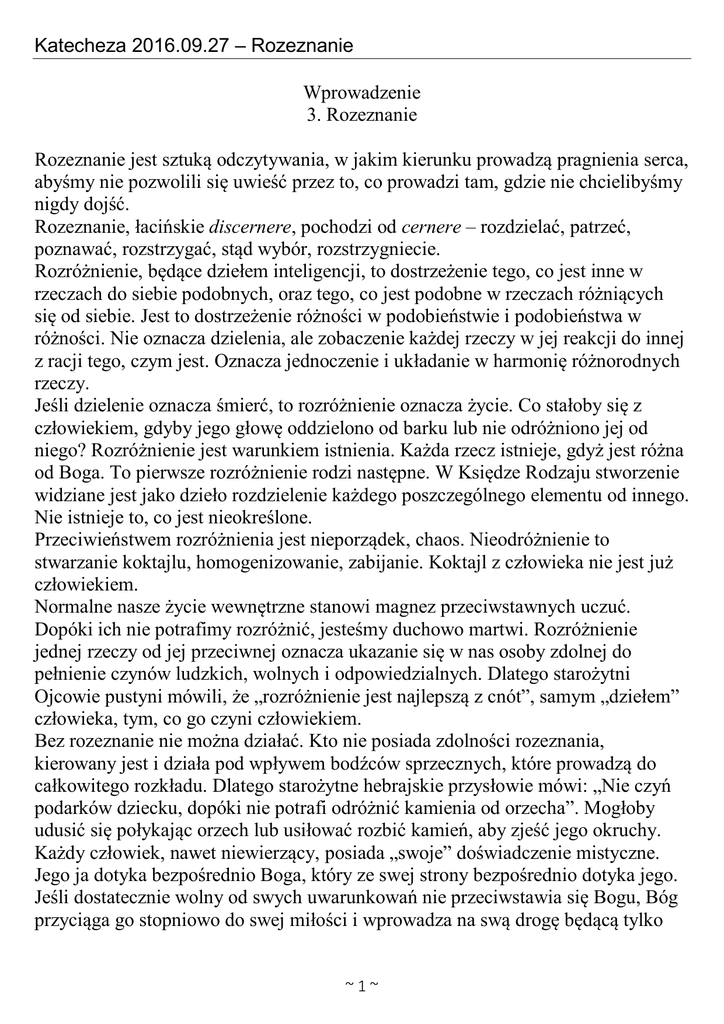 Katecheza 2016.09.27 – Rozeznanie Wprowadzenie 3. Rozeznanie
