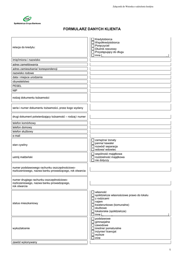 formularz danych klienta - Bank Spółdzielczy w Rzepinie