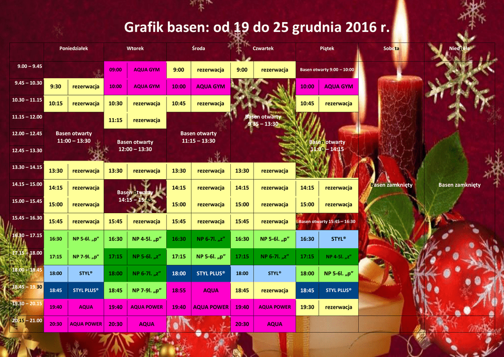 Grafik basen: od 19 do 25 grudnia 2016 r.