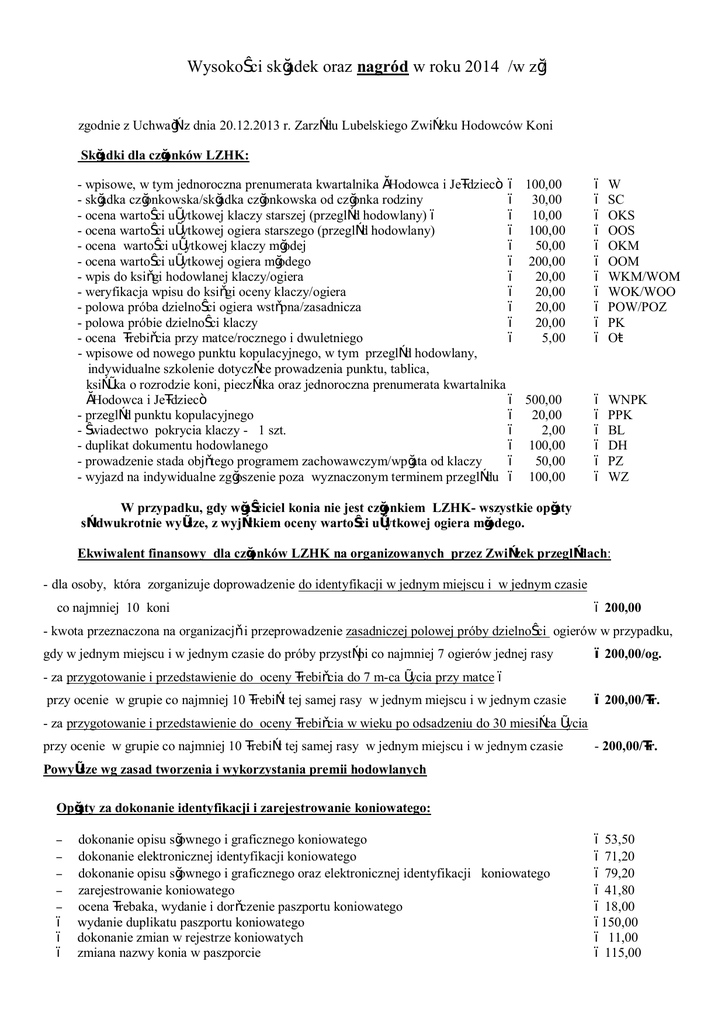 oplaty2014. - Lubelski Związek Hodowców Koni
