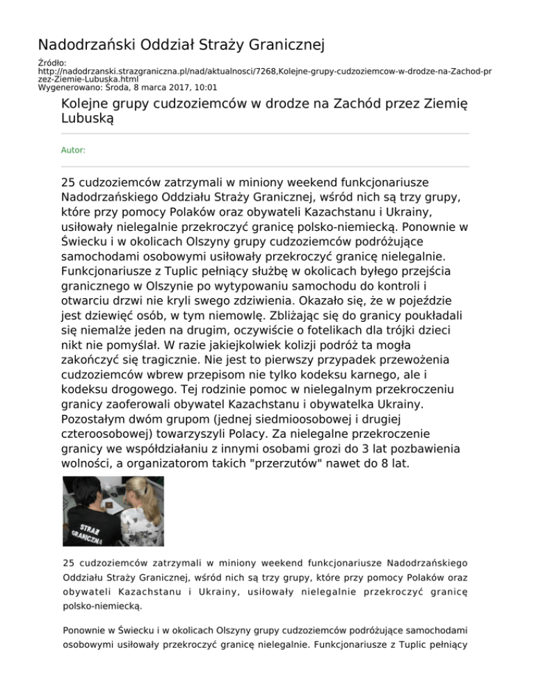 Generuj PDF z tej stronie - Straż Graniczna Nadodrzański Oddział