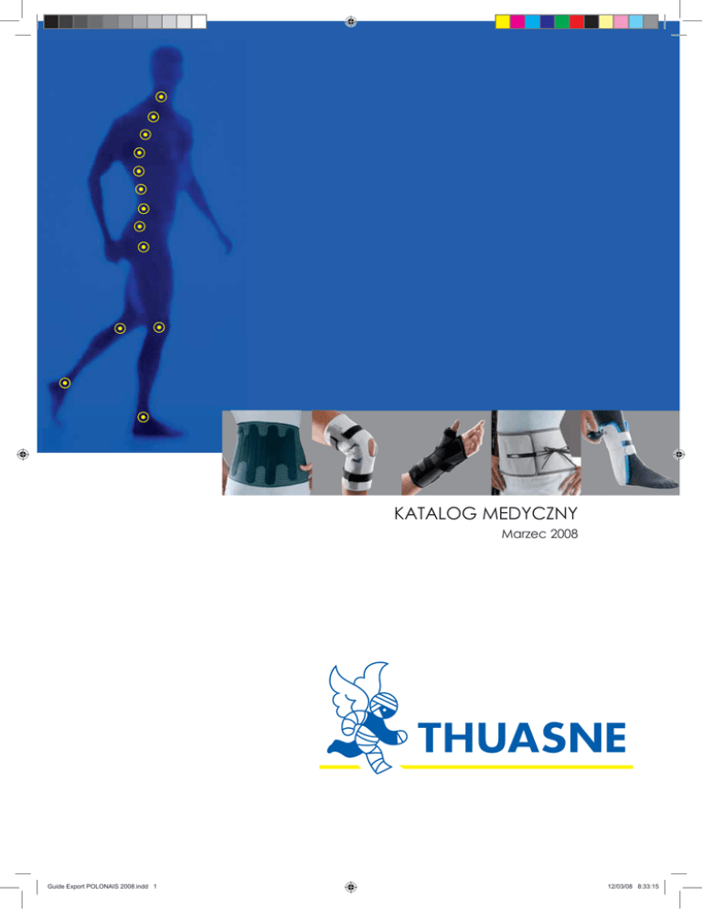 KATALOG MEDYCZNY Marzec 2008 Guide Export POLONAIS 2008.indd 1 12/03/08 8:33:15 Nowe pomysły 2008 Lombax Nature ® Orteza lędźwiowo-krzyżowa dla pań Thuasne sne Sport Elastyczna czna orteza skokowo-stopowa z wkładkami odciążającymi Bandaż bawełniany Short Stretch Bardzo mało elastyczny bandaż do leczenia obrzęków Flexideal® Short Stretch Elastyczny bandaż kompresyjny o małej rozciągliwości Guide Export POLONAIS 2008.indd 2 Lombax ® Immo Orteza piersiowo-lędźwiowokrzyżowa z gorsetem odciążającym Thuasne Thuasn h Sport S t Opaska z pierścieniem, utrzymującym rzepkę Venoflex Kokoon® LombaSkin ® Orteza lędźwiowo-krzyżowa lędźwiowo-krzyżowa, efekt "drugiej skóry" Thuasne Sport Elastyczna orteza skokowostopowa z odsłoniętą piętą ShortyStrap ® System łagodzący bóle związane z przeciążeniem okolic pachwin Artykuły Mobiderm®, zwiększające ruchliwość tkanek 12/03/08 8:33:22 Spis treści • Z A O P A TR Z E N IE O R TO P E D YCZ N E ORTEZY TUŁOWIA Badania kliniczne a materiał Combitex® 5 Ortezy piersiowo-lędźwiowo-krzyżowe 7 Pasy brzuszne, piersiowe, przepuklinowe i biodrowe 11 POZOSTAŁE ORTEZY ORTOPEDYCZNE Kołnierze szyjne 13 Ortezy stawu kolanowego 15 Ortezy unieruchamiające staw kolanowy Ortezy stawu kolanowego stabilizujące 17 Ortezy stawu skokowego 19 - 20 Opaski udowe 21 Orteza biodrowa 21 Orteza skokowo-stopowa z zegarem 21 Wkładki i podpiętki ortopedyczne 22 Ortezy stawu barkowego 23 Ortezy nadgarstka - Ortezy stawu łokciowego Szyna naparstkowa (aparat Stacka) 25 Ortezy dla dzieci 27 Thuasne Neoprene 29 Thuasne Sport 30 Ratownictwo 31 Szyny termoformowalne 33 Bandaże samoprzylepne i samoprzyczepne 35 • ZAOPATRZENIE W CHOROBACH UKŁADU KRĄŻENIA SKARPETY, POŃCZOCHY I RAJSTOPY ELASTYCZNE Venoflex® dla pań 37 Venoflex dla panów 39 Venoflex meskie i damskie 40 ® ® TECHNOLOGIA PRODUKCJI NA SPECJALNE ZAMÓWIENIA Venoflex® 40 Thuasne Lymphology - Mobiderm 41 BANDAŻE ELASTYCZNE I AKCESORIA 42 - 43 ® Zdjęcia : Studio Caterin Studio 36 F. Marquet C. Haase Graphic Obsession Ilustracje : H. Fournié • ELASTYCZNE UBRANIA PODTRZYMUJĄCE 45 • Z E W NĘ TR Z N E P R O TE Z Y P IE R S I 49 ZESTAWIENIA ROZMIARÓW Guide Export POLONAIS 2008.indd 3 51 - 55 12/03/08 8:33:30 BADANIA KLINICZNE Lombacross® Activity Ä Cel badania : Ocenić działanie ortezy lędźwiowo-krzyżowej Lombacross® Activity. Ä Metodologia : Badany wycinek : 197 losowo wybranych pacjentów, podzielonych na dwie grupy (pacjenci noszą ortezy i biorą leki/równolegle badana jest grupa kontrolna, leczona tradycyjnie). Czas trwania badania : 3 miesiące. Ä Kryteria skuteczności badania : Główne kryterium : Jak długo trwa powrót do zdrowia i normalnej aktywności. Drugie kryterium : Relacja między ewolucją bólu a okresem podawania leków. Ä Kryterium ekonomiczne : Koszt leków, podawanych przez okres terapii. Koszt ogólnego leczenia. Ä Kryterium dodatkowe : Ocena pacjenta. populacja kontrolna 12 10 8 6 4 2 0 J0 J 30 J 60 DŁUGOŚCI OKRESÓW (ILE DNI) Grupa 1 (pacjenci, noszący pas lędźwiowy) J 90 Grupa 2 (grupa kontrolna) Wyniki punktacji z badania EIFEL : Ocena korelacji między bólami lędźwiowymi a podejmowaniem aktywności po rekonwalescencji Ä Ewolucja funkcjonalnej poprawy stanu pacjenta : Już w pierwszym miesiącu odnotowano wyraźne przyśpieszenie powrotu do normalnego stanu funkcjonalnego. Wynik ten jest jeszcze wyraźniejszy w odniesieniu do grupy pacjentów, noszących podczas leczenia pas lędźwiowy. WYNIK PUNKTACJI Z BADANIA EVA (WIZUALNA SKALA ANALOGOWA) Chronologiczna analiza punktacji w badaniu EVA od D0 do D90 populacja kontrolna WYNIK PUNKTACJI Z BADANIA EIFEL Chronologiczna analiza punktacji w badaniu EIFEL od D0 do D90 70 60 50 40 30 20 10 J0 J 30 J 60 DŁUGOŚCI OKRESÓW (ILE DNI) Grupa 1 (pacjenci, noszący pas lędźwiowy) J 90 Grupa 2 (grupa kontrolna) Wyniki punktacji z badania EVA : Rozwój nasilenia bólu Ä Ewolucja bólu : Już w pierwszym miesiącu odnotowano wyraźny spadek bólu. Wynik ten jest jeszcze wyraźniejszy w odniesieniu do grupy pacjentów, noszących podczas leczenia pas lędźwiowy. Ä Wyniki : - Różnicę między kosztami leczenia z ortezą lędźwiowo-krzyżową (pasem lędźwiowym) a kosztami leczenia bez pasa lędźwiowego szacuje się na 200 € na korzyść pasa. - W 90 % przypadków ból ustępował szybko. - Ponadto stwierdzono, że pacjenci, noszący pas lędźwiowy, szybciej powracali do normalnej aktywności. - Użytkownicy pasów lędźwiowych bardzo skrupulatnie poddawali się leczeniu. Guide Export POLONAIS 2008.indd 4 12/03/08 8:33:30 Combitex • Jedyna w swoim rodzaju technologia, opatentowana przez firmę THUASNE : ® Zasada działania materiału Combitex® Materiał Combitex ® odprowadzanie potu warstwa hydrofilowa warstwa hydrofobowa skóra Combitex® - jedyna w swoim rodzaju technologicznie i technicznie zaawansowana tkanina, będąca wynalazkiem firmy Thuasne. Połączenie warstwy hydrofobowej z hydrofilową umożliwia odparowywanie potu i regulację temperatury ciała. • Efekt materiału Combitex® w przypadku pasa lędźwiowego : Tkaninę Combitex®, zapewniającą szybkie odprowadzanie potu, można stosować bezpośrednio na skórę, co ułatwia leczenie przewlekłych bólów kręgosłupa. Pas lędźwiowy można nosić pod ubraniem przez cały dzień. Plecy chronione przed gromadzeniem wilgoci i przeciągami pozostają suche z korzyścią dla efektów terapeutycznych pasa. Wzmocnienie z bawełny, produkowanej zdrowymi i społecznie akceptowanymi metodami • Wzmocnienie pasa lędźwiowego Lombax Nature® po wewnętrznej stronie złożone jest w 96 % z naturalnej bawełny, zapewniającej maksymalny komfort i miękkość. Bawełna uprawiana i przerabiana w warunkach, odpowiadających rygorystycznym normom, gwarantującym jakość wyrobów, dbałość o ochronę środowiska i godziwe warunki pracy w zakładzie wytwórczym. Tylko 3 % światowej produkcji bawełny 