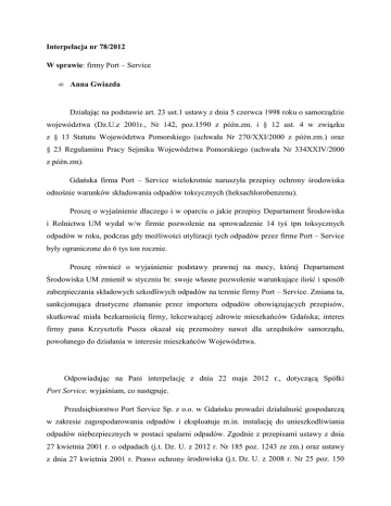 Interpelacja nr 78/2012 W sprawie: firmy Port – Service • Anna