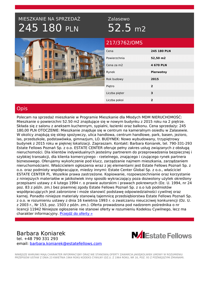 245 180 PLN 52.5 m2 - NAI Estate Fellows