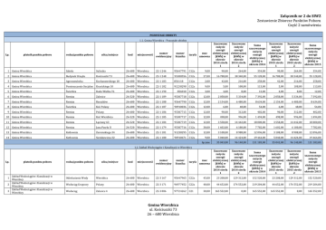 Załącznik nr 2 do SIWZ Zestawienie Zbiorcze Punktów Poboru Część 2 zamówienia POZOSTAŁE OBIEKTY 1.1. Gmina Wierzbica - Pozostałe obiekty Lp. płatnik punktu poboru rodzaj punktu poboru ulica/miejsce kod miejscowość numer ewidencyjny numer licznika taryfa moc umowna Szacowane zużycie energii elektrycznej [kWh] w okresie 2014 strefa 1 Szacowane zużycie energii elektrycznej [kWh] w okresie 2014 strefa 2 Suma szacowanego zużycia energii elektrycznej [kWh] w okresie 2014 Szacowane zużycie energii elektrycznej [kWh] w okresie 2015 strefa 1 Szacowane zużycie energii elektrycznej [kWh] w okresie 2015 strefa 2 Suma szacowanego zużycia energii elektrycznej [kWh] w okresie 2015 1 Gmina Wierzbica Szkoła Suliszka 26-680 Wierzbica 22-1 246 95647791 C12a 9,00 90,00 264,00 354,00 90,00 264,00 354,00 2 Gmina Wierzbica Budynek Urzędu Kościuszki 73 26-680 Wierzbica 22-1 248 95308556 C12a 27,00 16 788,00 38 340,00 55 128,00 16 788,00 38 340,00 55 128,00 3 Gmina Wierzbica Agronomówka Kochanowskiego 10 26-680 Wierzbica 22-1 183 856118 C12a 2,00 42,00 216,00 258,00 42,00 216,00 258,00 4 Gmina Wierzbica Pomieszczenie Socjalne Krasickiego 10 26-680 Wierzbica 22-1 182 91238298 C12a 9,00 5,00 108,00 113,00 5,00 108,00 113,00 5 Gmina Wierzbica Świetlica Ruda Wielka 76 26-680 Wierzbica 22-1 190 856010 C12a 3,00 4,00 8,00 12,00 4,00 8,00 12,00 6 Gmina Wierzbica Remiza Zalesice 26-520 Wierzbica 22-1 189 95307718 C12a 12,00 2 058,00 5 334,00 7 392,00 2 058,00 5 334,00 7 392,00 7 Gmina Wierzbica Remiza Rzeczków 26-680 Wierzbica 22-1 188 95647790 C12a 12,00 2 154,00 6 480,00 8 634,00 2 154,00 6 480,00 8 634,00 8 Gmina Wierzbica Świetlica Kol. Polany 26-680 Wierzbica 22-1 187 90910036 C12a 12,00 6,00 48,00 54,00 6,00 48,00 54,00 9 Gmina Wierzbica Remiza Polany 26-680 Wierzbica 22-1 186 95307715 C12a 12,00 90,00 312,00 402,00 90,00 312,00 402,00 10 Gmina Wierzbica Remiza Kol. Wierzbica 26-520 Wierzbica 22-1 185 95307717 C12a 12,00 498,00 996,00 1 494,00 498,00 996,00 1 494,00 11 Gmina Wierzbica Remiza Łączany 63 26-520 Wierzbica 22-1 184 95307719 C12a 12,00 3 558,00 14 442,00 18 000,00 3 558,00 14 442,00 18 000,00 12 Gmina Wierzbica Remiza Jana Pawła II 26-520 Wierzbica 22-1 179 95307716 C12a 30,00 1 602,00 6 180,00 7 782,00 1 602,00 6 180,00 7 782,00 13 Gmina Wierzbica Kotłownia Żeromskiego 34 26-680 Wierzbica 22-1 181 91238295 C12a 12,00 3 108,00 8 988,00 12 096,00 3 108,00 8 988,00 12 096,00 14 Gmina Wierzbica Kotłownia Sienkiewicza 32 26-680 Wierzbica 22-1 180 90910671 C12a 9,00 5 040,00 14 424,00 19 464,00 5 040,00 14 424,00 19 464,00 łącznie 35 043,00 96 140,00 131 183,00 35 043,00 96 140,00 131 183,00 moc umowna Szacowane zużycie energii elektrycznej [kWh] w okresie 2014 strefa 1 Szacowane zużycie energii elektrycznej [kWh] w okresie 2014 strefa 2 Suma szacowanego zużycia energii elektrycznej [kWh] w okresie 2014 Szacowane zużycie energii elektrycznej [kWh] w okresie 2015 strefa 1 Szacowane zużycie energii elektrycznej [kWh] w okresie 2015 strefa 2 Suma szacowanego zużycia energii elektrycznej [kWh] w okresie 2015 1.2. Zakład Wodociągów i Kanalizacji w Wierzbicy Lp. płatnik punktu poboru Zakład Wodociągów i Kanalizacji w Wierzbicy Zakład Wodociągów i Kanalizacji w 2 Wierzbicy Zakład Wodociągów i Kanalizacji w 3 Wierzbicy 1 rodzaj punktu poboru ulica/miejsce kod miejscowość numer ewidencyjny numer licznika taryfa Odżelaziania Wody Wierzbica 26-680 Wierzbica 22-3 167 95647965 C22a 45,00 23 208,00 129 312,00 152 520,00 23 208,00 129 312,00 152 520,00 Wodociąg Grupowy Polany 26-680 Wierzbica 22-3 171 96977452 C22a 40,00 44 652,00 174 552,00 219 204,00 44 652,00 174 552,00 219 204,00 Wodociąg Zalesice 4 26-680 Wierzbica 22-3 086 97724262 C21 30,00 165 552,00 0,00 165 552,00 165 552,00 0,00 165 552,00 Gmina Wierzbica ul. Kościuszki 73 26 – 680 Wierzbica Załącznik nr 2 do SIWZ Zestawienie Zbiorcze Punktów Poboru Część 2 zamówienia Zakład Wodociągów i Kanalizacji w Wierzbicy Zakład Wodociągów i Kanalizacji w 5 Wierzbicy Zakład Wodociągów i Kanalizacji w 6 Wierzbicy 4 Oczyszczalnia Ścieków Wierzbica 26-680 Wierzbica 22-3 173 95759539 C21 115,00 177 048,00 0,00 177 048,00 177 048,00 0,00 177 048,00 Ujęcie Wody Ruda Wielka 26-680 Wierzbica 22-4 760 50067587 C12a 12,00 1 836,00 6 180,00 8 016,00 1 836,00 6 180,00 8 016,00 Inne Obiekty Radomska 16 26-680 Wierzbica 22-4 761 50065906 C12a 15,00 294,00 1 248,00 1 542,00 294,00 1 248,00 1 542,00 łącznie 412 590,00 311 292,00 723 882,00 412 590,00 311 292,00 723 882,00 moc umowna Szacowane zużycie energii elektrycznej [kWh] w okresie 2014 strefa 1 Szacowane zużycie energii elektrycznej [kWh] w okresie 2014 strefa 2 Suma szacowanego zużycia energii elektrycznej [kWh] w okresie 2014 Szacowane zużycie energii elektrycznej [kWh] w okresie 2015 strefa 1 Szacowane zużycie energii elektrycznej [kWh] w okresie 2015 strefa 2 Suma szacowanego zużycia energii elektrycznej [kWh] w okresie 2015 1.3. Publiczna Szkoła Podstawowa im. Stefana Żeromskiego w Wierzbicy Lp. płatnik punktu poboru Publiczna Szkoła Podstawowa im. Stefana Żeromskiego w Wierzbicy Publiczna Szkoła Podstawowa im. Stefana 2 Żeromskiego w Wierzbicy Publiczna Szkoła Podstawowa im. Stefana 3 Żeromskiego w Wierzbicy Publiczna Szkoła Podstawowa im. Stefana 4 Żeromskiego w Wierzbicy 1 rodzaj punktu poboru ulica/miejsce kod miejscowość numer ewidencyjny numer licznika taryfa Szkoła Podstawowa Żeromskiego 62 26-680 Wierzbica 22-4 759 00141332 C12a 3,00 66,00 78,00 144,00 66,00 78,00 144,00 Szkoła Podstawowa Żeromskiego 62 26-680 Wierzbica 22-4 756 50067630 C12a 9,00 204,00 456,00 660,00 204,00 456,00 660,00 Szkoła Podstawowa Żeromskiego 62 26-680 Wierzbica 22-4 758 50065908 C12a 12,00 4 248,00 7 872,00 12 120,00 4 248,00 7 872,00 12 120,00 Szkoła Podstawowa Żeromskiego 62 26-680 Wierzbica 22-4 757 50067605 C12a 9,00 10 440,00 18 594,00 29 034,00 10 440,00 18 594,00 29 034,00 łącznie 14 958,00 27 000,00 41 958,00 14 958,00 27 000,