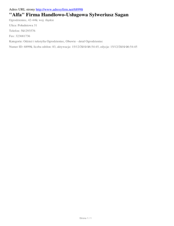 "Alfa" Firma Handlowo-Uslugowa Sylweriusz Sagan