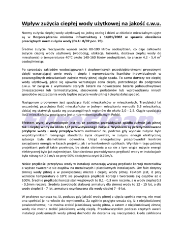 zimnej wody pitnej a w powiększonej mierze i cieplej wody pitnej. Faktem jest, iż przy