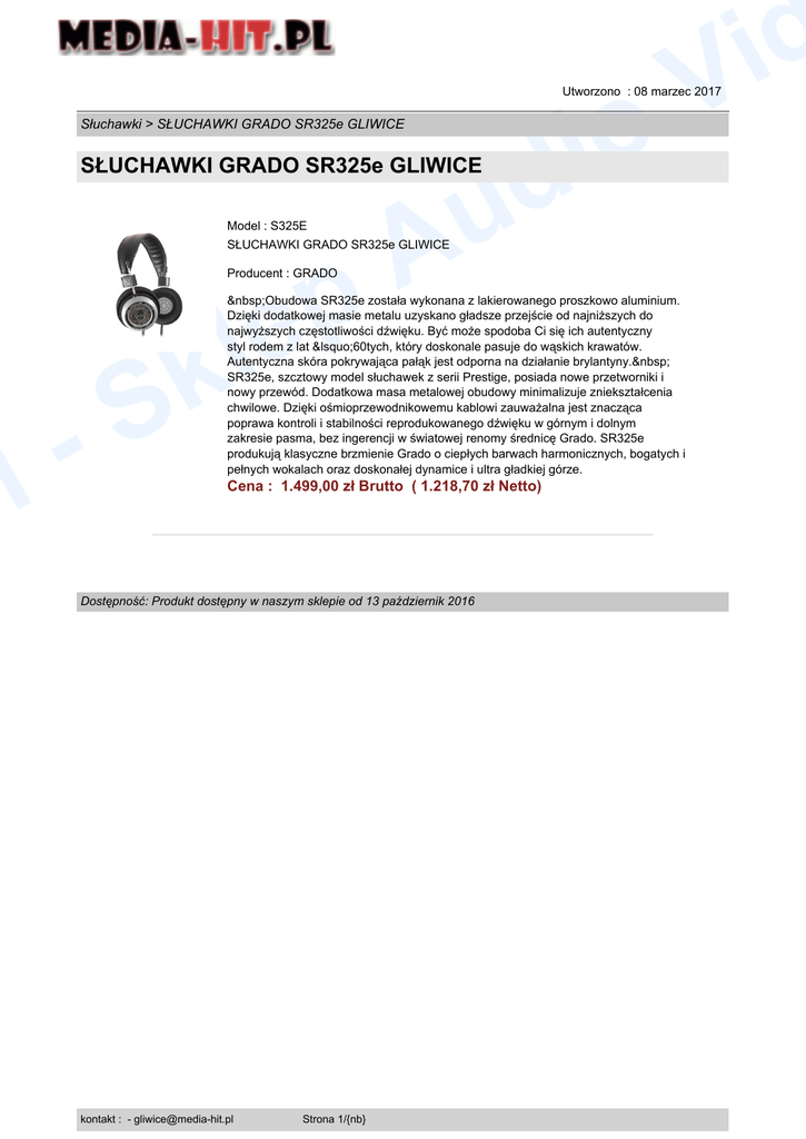 SŁUCHAWKI GRADO SR325e GLIWICE - Media
