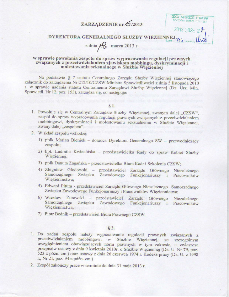 przeciwdzialaniem mobbingowi u, Shubie Wiqzielnej, ze szczeg6k:Jn