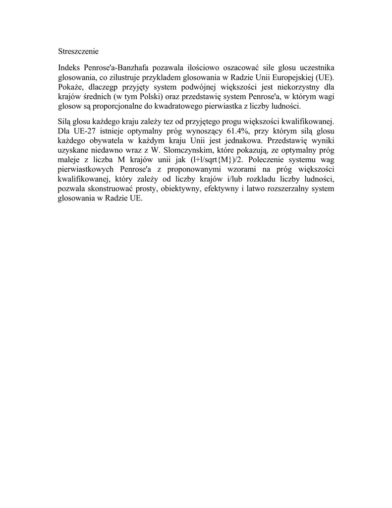 Streszczenie Indeks Penrose`a-Banzhafa pozawala ilościowo