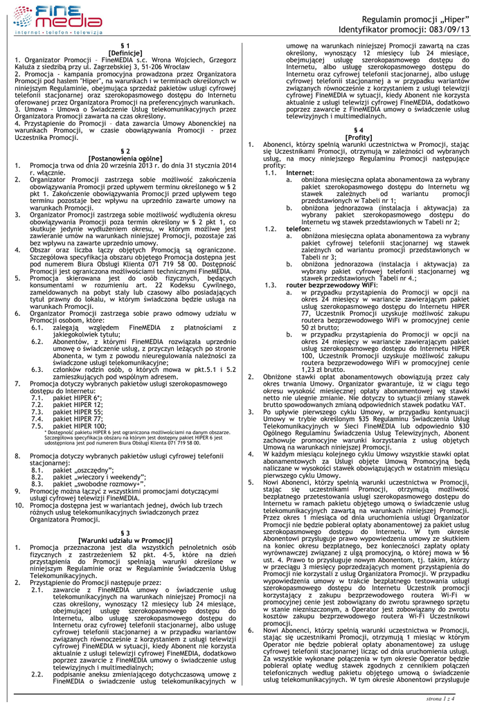 1. Organizator Promocji – FineMEDIA s.c. Wrona Wojciech, Grzegorz