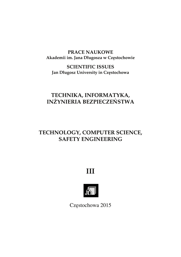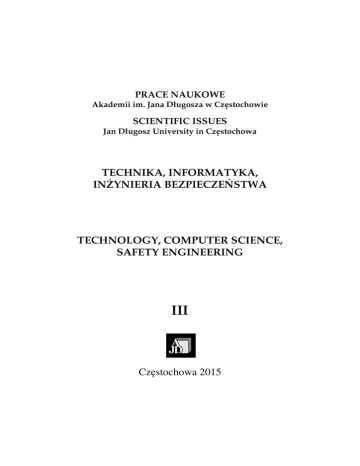 PRACE NAUKOWE Akademii im. Jana Długosza w Cz stochowie SCIENTIFIC ISSUES Jan Długosz University in Cz stochowa TECHNIKA, INFORMATYKA, IN YNIERIA BEZPIECZE STWA TECHNOLOGY, COMPUTER SCIENCE, SAFETY ENGINEERING III Cz stochowa 2015 Redaktor naczelny / Editor-in-chief: dr in . Marcin SOSNOWSKI Redaktor pomocniczy / Coeditor: dr Tomasz PRAUZNER Recenzenci współpracuj cy / Reviewers: prof. RNDr Vilém MÁDR, CSc. – Vysoká škola logistiky, o.p.s., P erov, Czech Republic assoc. prof. Radomir Š UREK PhD –VSB-Technical University, Ostrava, Czech Republic prof. dr hab. in . Jerzy WOLANIN – Szkoła Główna Słu by Po arniczej dr hab. in . Andrzej MIZERSKI – Szkoła Główna Słu by Po arniczej dr hab. in . Zoja BEDNAREK– Szkoła Główna Słu by Po arniczej dr hab. El bieta DUMNICKA – Instytut Ochrony Przyrody PAN dr hab. Ludwik DOBRZY SKI – Narodowe Centrum Bada J drowych dr hab. in . Jan WITKOWSKI – Politechnika Warszawska dr hab. in . Gabriel BOROWSKI – Politechnika Lubelska prof. dr hab. in . Robert SEKRET – Politechnika Cz stochowska prof. dr hab. Oleg TIKHONENKO – Politechnika Cz stochowska dr hab. in . Andrzej RUSEK– Politechnika Cz stochowska dr hab. in . Wioletta BAJDUR – Politechnika Cz stochowska dr hab. in . Józef JASI SKI – Politechnika Cz stochowska dr hab. in . Adam GNATOWSKI – Politechnika Cz stochowska dr hab. in . Marek LIS – Politechnika Cz stochowska Redaktorzy tematyczni / Topic Editors dr hab. in . Jerzy PISAREK, dr hab. in . Andrzej ROMAN dr hab. Mikhail SELIANINAU, dr Władysław W GRZYN Przygotowanie techniczne do druku: Katarzyna CIESIELSKA Korekta: Paulina PIASECKA Projekt okładki: Damian RUDZI SKI © Copyright by Akademia im. Jana Długosza w Cz stochowie Cz stochowa 2015 Czasopismo indeksowane w: / Journal indexed in: − − BazTech http://baztech.icm.edu.pl Index Copernicus Journal Master List http:// indexcopernicus.com Pismo recenzowane Podstawow wersj periodyku jest wersja papierowa ISSN 2300-5343 Wydawnictwo im. Stanisława Podobi skiego Akademii im. Jana Długosza w Cz stochowie 42-200 Cz stochowa, ul. Waszyngtona 4/8 Tel. (34) 378-43-29, fax (34) 378-43-19 www.ajd.czest.pl e-mail: [email protected] SPIS TRE CI Wst p .................................................................................................................. .7 Lidia Chrz stek, Barbara Dondela, Małgorzata Deska Bezpieczne składniki kosmetyków – lipidy i ich pochodne ................................ 9 Paweł Chwietczuk Pozytywne aspekty zastosowania sterowników PLC w systemach automatyki wybranych elementów wyposa enia technicznego budynku mieszkalnego ..................................................................................................... 29 Tomasz Dembiczak Okre lenie korelacji pomi dzy zag szczalno ci a płynno ci mas formierskich pod wysokim ci nieniem.............................................................. 39 Renata Gnatowska Detekcja charakterystycznych obszarów opływu obiektów metod wizualizacji powierzchniowej ........................................................................... 51 Dawid Kaszuba Policja typem biurokracji Weberowskiej w zarz dzaniu .................................. 59 Olgierd Kucharski Organy nadzoru i kontroli nad warunkami bezpiecze stwa i higieny pracy w Polsce............................................................................................................. 69 Renata Musieli ska, Barbara Bus Przegl d wybranych antyoksydantów w aspekcie bezpiecze stwa ich stosowania ................................................................................................... 93 Katarzyna Pach, Małgorzata Hyla, Jacek Filipecki Wykorzystanie radiometru rum-2 do analizy promieniowania gamma w wybranych materiałach budowlanych ......................................................... 113 Michał Paj cki Informatyczne wspomaganie zarz dzania zleceniami w mikroprzedsi biorstwie na przykładzie serwisu komputerowego ............... 131 Jerzy Pisarek, Radomir Š urek Zasady prowadzenia edukacji i szkole w obszarze bezpiecze stwa lotnictwa ogólnego i transportu lotniczego ..................................................... 141 Tomasz Prauzner Kształcenie umiej tno ci technicznych z wykorzystaniem wirtualnego rodowiska symulacyjnego.............................................................................. 157 Tomasz Prauzner Neurodydaktyka – innowacyjny sposób my lenia o nowoczesnej edukacji w społecze stwie informacyjnym ................................................................... 167 Tomasz Prauzner Realizacja kształcenia technicznego z wykorzystaniem nowoczesnych technologii informacyjnych w aspekcie zada organizacyjnych dyrektora szkoły .............................................................................................. 181 Paweł Ptak Ocena jako ci wyników pomiarów grubo ci powłok na podło ach ferromagnetycznych ........................................................................................ 195 Paweł Ptak Zastosowanie systemu komputerowego przy projektowaniu i symulacji prac układów pomiarowych ............................................................................ 205 Andrzej Roman Wpływ zjawiska wypierania pr du na straty wywołane przez pr dy wirowe w modelu domenowym składaj cym si ze sko czonej liczby domen ........... 213 Mikhail Selianinau, Rafael Ismailau Wyznaczanie pola kierunków linii papilarnych odcisków palców w automatycznych systemach identyfikacji biometrycznej ............................ 221 Marcin Sosnowski, Karolina Górska Analiza numeryczna wpływu parametrów ci gów komunikacyjnych na czas ewakuacji mieszka ców ..................................................................... 231 Marcin Sosnowski, Karolina Grabowska Analiza numeryczna wpływu materiału palnego na pole temperatury podczas po aru ................................................................................................ 237 Marcin Sosno