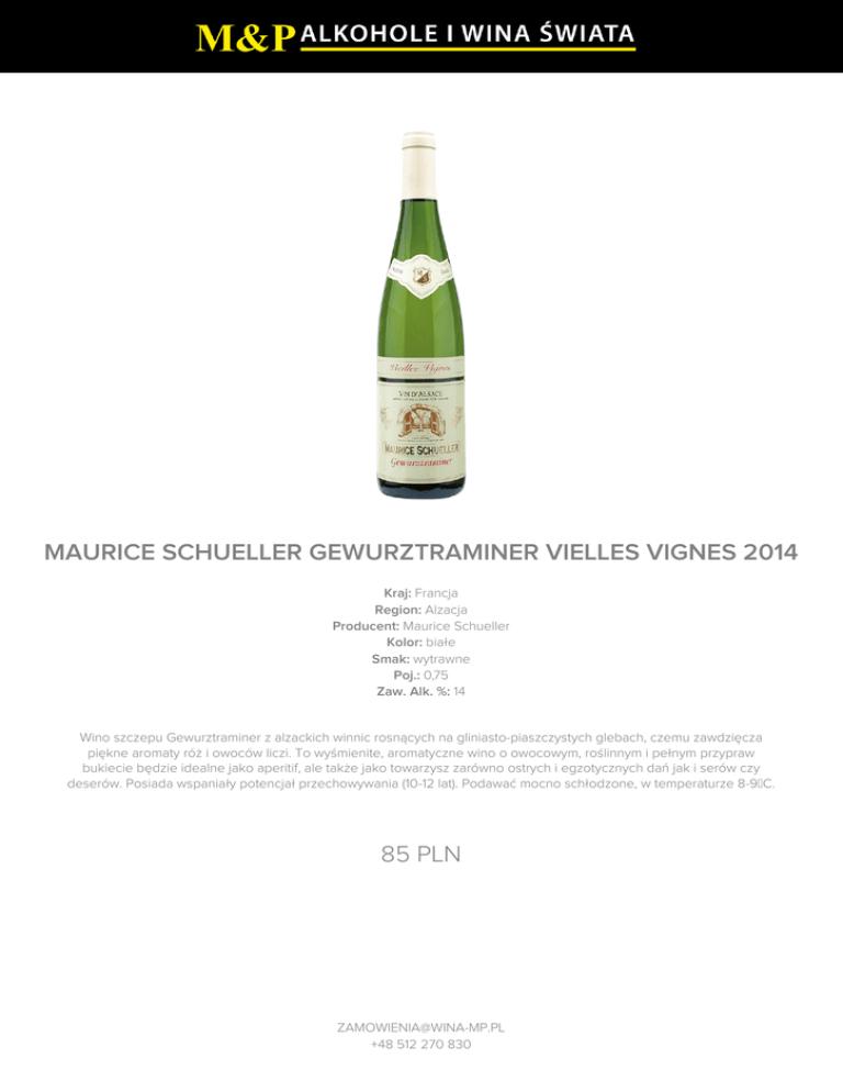 maurice schueller gewurztraminer vielles vignes 2014 85 pln
