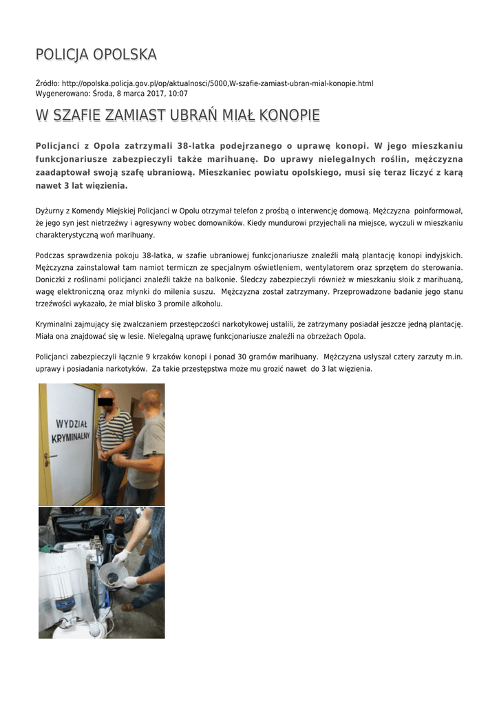 POLICJA OPOLSKA W SZAFIE ZAMIAST UBRAŃ MIAŁ KONOPIE