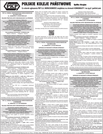 Co wtorek ogłoszenia PKP S.A. NIERUCHOMOŚCI
