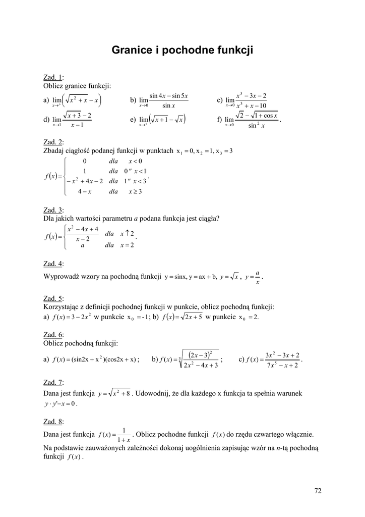 Granice i pochodne funkcji