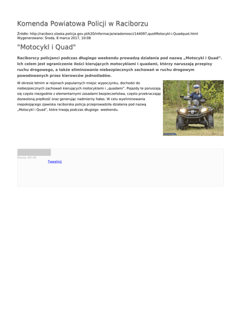 Komenda Powiatowa Policji w Raciborzu "Motocykl i Quad"