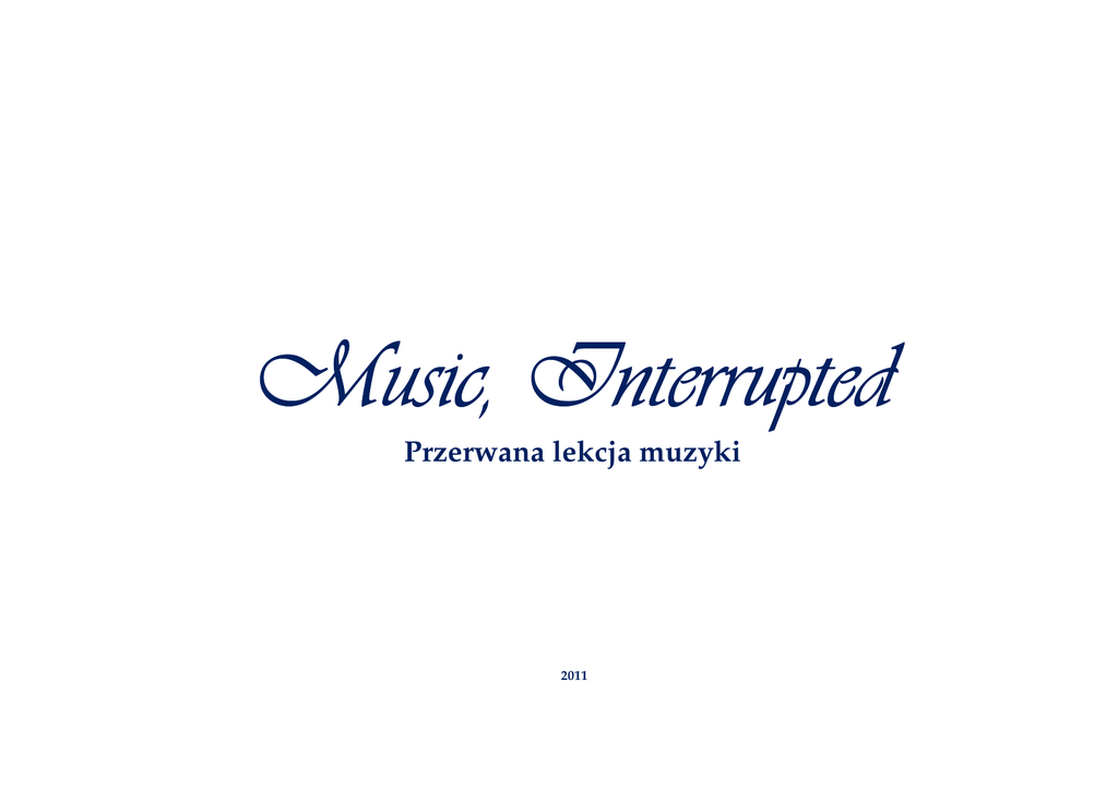 Music, Interrupted Przerwana lekcja muzyki 2011 Starring / w rolach głównych: Krzysztof Gustaw as Christopher Goostav Krzysztof Duma as Dark Lord / The Headmaster Paulina Michałowska as the Student-Saboteur The Janitor as himself and Milena Mełgieś Karolina Burył Natalia Cichosz Piotr Noga Cezary Robak Karolina Bartnik Patrycja Nawłatyna Screenplay/Scenariusz: Paulina Michałowska Director of Photography/Zdjęcia: Paweł Ciemięga Director/Reżyser: Paweł Ciemięga The End