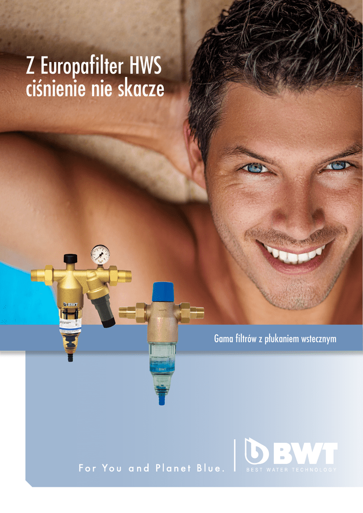 Z Europafilter HWS ciśnienie nie skacze Gama filtrów z płukaniem wstecznym 2 | Europafilter Gama sprawdzonych filtrów Europafilter Europafilter HWS - filtry z płukaniem wstecznym, reduktorem ciśnienia, manometrem i zaworem zwrotnym Europafilter RS - filtry z płukaniem wstecznym EUROPAFILTER HWS ¾˝– 1˝ z reduktorem ciśnienia Filtr mechaniczny z płukaniem wstecznym, reduktorem ciśnienia, manometrem i zaworem zwrotnym, obsługiwany ręcznie. Głowica mosiężna, klosz z przezroczystego tworzywa sztucznego, element filtracyjny, śrubunki przyłączeniowe z uszczelkami, pokrętło elementów czyszczących podczas płukania, spust wody popłucznej. Filtr posiada atest PZH. Dla wszystkich typów: skuteczność filtracji 90 µm, ciśnienie nominalne 10 bar, ciśnienie robocze min 1,5 / max 16 bar temperatura wody/otoczenia max. 30/40 °C. Europafilter HWS nominalna średnica przyłącza wydajność przy Δp = 0,2 bar DN ¾˝ 1˝ 20 25 m3/h 3,0 3,5 długość montażowa mm 273 273 wysokość całkowita mm nr zamówienia 300 810243 810244 Europafilter HWS EUROPAFILTER RS (RF) ¾˝– 2˝ Filtr mechaniczny z płukaniem wstecznym, obsługiwany ręcznie. Głowica mosiężna, klosz z przezroczystego tworzywa sztucznego, element filtracyjny, śrubunki przyłączeniowe z uszczelkami, pokrętło elementów czyszczących podczas płukania, spust wody popłucznej. Filtr posiada atest PZH. Dla wszystkich typów: skuteczność filtracji 90 µm, ciśnienie nominalne 16 bar, temperatura wody/otoczenia max. 30/40 °C. EUROPAFILTER RS (RF) ¾˝– 1¼˝ Europafilter RS (RF) ¾˝ 1˝ DN 20 25 32 m3/h 3,0 3,5 4,0 długość montażowa mm 184 184 203 wysokość całkowita mm nominalna średnica przyłącza wydajność przy Δp = 0,2 bar nr zamówienia 1¼˝ 278 810233 810234 810235 Europafilter RS (RF) 1˝ EUROPAFILTER RS (RF) 1½˝– 2˝ Europafilter RS (RF) nominalna średnica przyłącza wydajność przy Δp = 0,2 bar DN 1½˝ 2˝ 40 50 12,0 m3/h 9,0 długość montażowa mm 254 wysokość całkowita mm nr zamówienia 274 370 10236 10237 ¾˝ – 1¼˝ 1½˝ – 2˝ Element filtracyjny do EUROPAFILTER RS (RF) Element filtracyjny do Europafilter RS (RF) skuteczność filtracji nr zamówienia µm 90 90 1902393 2060562 Zastrzegamy sobie prawo do wprowadzania zmian konstrukcyjnych, technicznych, materiałowych, parametrów technicznych, wyposażenia i specyfikacji oferowanych produktów bez uprzedniego powiadamiania. Wygląd produktów może odbiegać od zamieszczonych zdjęć. Zastrzegamy sobie możliwość błędów w opisie i drukarskich. Europafilter RS (RF) 1½˝