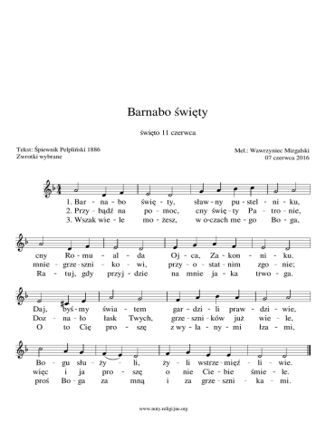 Barnabo święty - Nuty Religijne