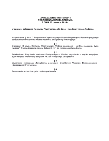 ZARZĄDZENIE NR 5107/2014 PREZYDENTA MIASTA RADOMIA Z