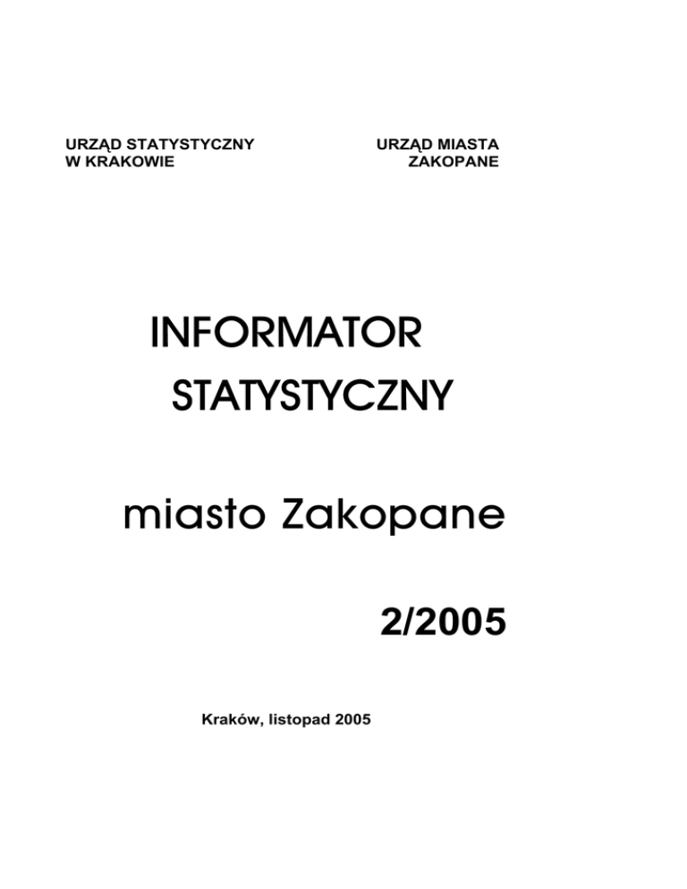 INFORMATOR STATYSTYCZNY miasto Zakopane