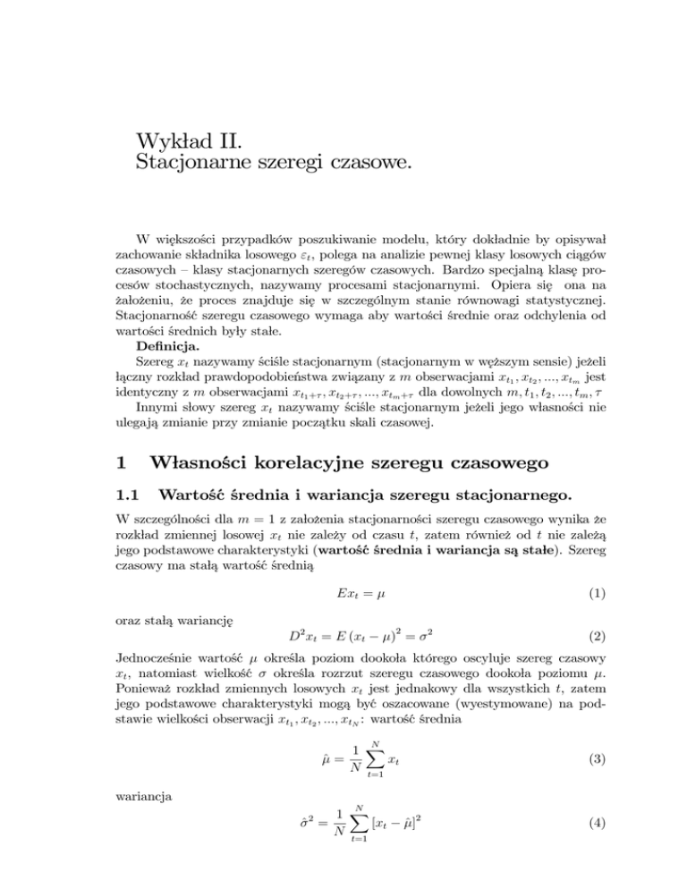 Wartość średnia i wariancja szeregu stacjonarnego.