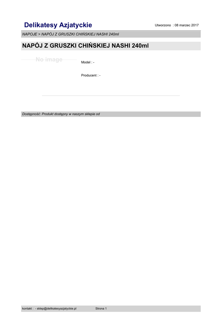Delikatesy Azjatyckie Utworzono : 08 marzec 2017 NAPOJE > NAPÓJ Z GRUSZKI CHIŃSKIEJ NASHI 240ml NAPÓJ Z GRUSZKI CHIŃSKIEJ NASHI 240ml No image Model : - Producent : - Dostępność: Produkt dostępny w naszym sklepie od kontakt : - [email protected] Strona 1