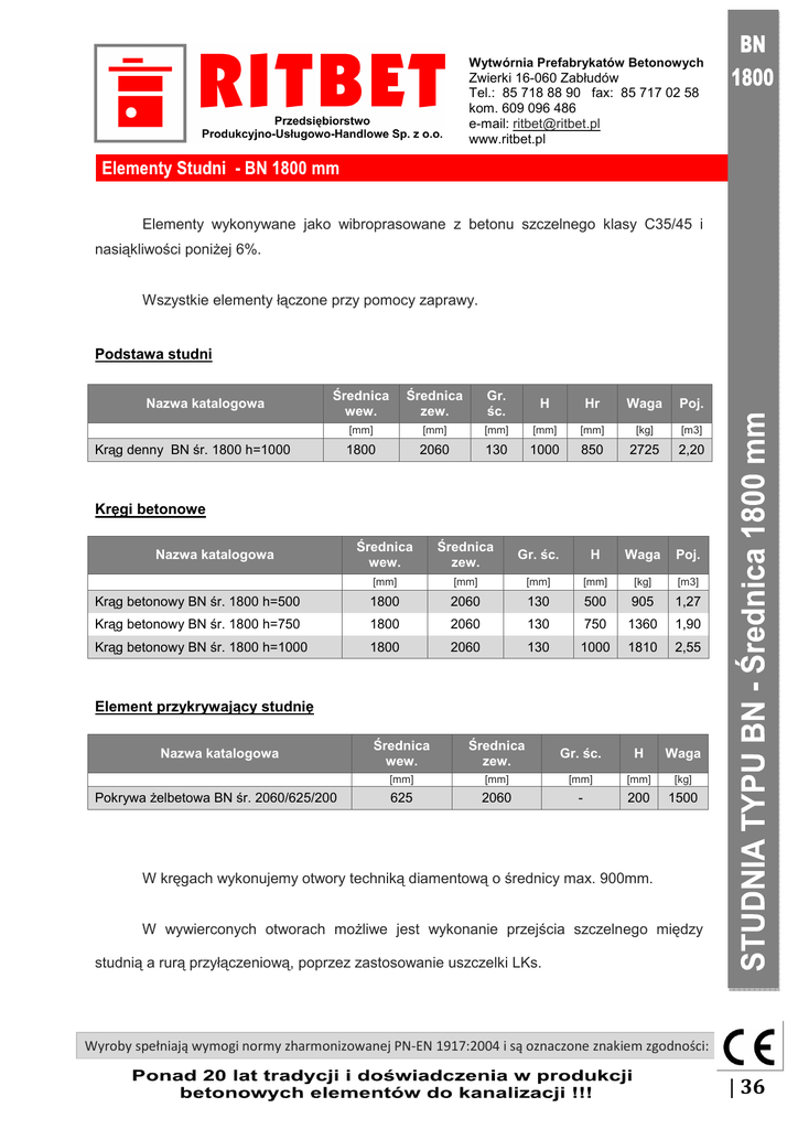 Katalog - STUDNIA BN 1800