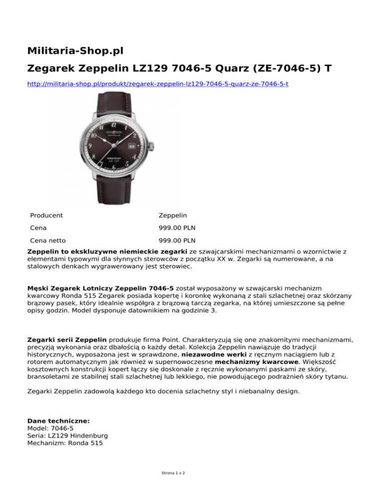 Militaria-Shop.pl Zegarek Zeppelin LZ129 7046-5 Quarz (ZE-7046
