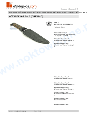 w Utworzono : 08 marzec 2017 AKCESORIA MYŚLIWSKIE > NOŻE MYŚLIWSKIE I INNE > NOŻE MYŚLIWSKIE > NOŻE KIZLYAR > NÓŻ KIZLYAR SH NÓŻ KIZLYAR SH 5 (DREWNO) p . e Model : NÓŻ KIZLYAR SH 5 (DREWNO) Producent : Kizlyar n j y iz DefSemiHidden="true" DefQFormat="false" DefPriority="99" LatentStyleCount="267"> UnhideWhenUsed="false" QFormat="true" Name="Normal" /> w o t k o .n UnhideWhenUsed="false" QFormat="true" Name="heading 1" /> w w UnhideWhenUsed="false" QFormat="true" Name="Title" /> UnhideWhenUsed="false" QFormat="true" Name="Subtitle" /> UnhideWhenUsed="false" QFormat="true" Name="Strong" /> UnhideWhenUsed="false" QFormat="true" Name="Emphasis" /> UnhideWhenUsed="false" Name="Table Grid" /> UnhideWhenUsed="false" kontakt : - [email protected] Strona 1/{nb} w Utworzono : 08 marzec 2017 AKCESORIA MYŚLIWSKIE > NOŻE MYŚLIWSKIE I INNE > NOŻE MYŚLIWSKIE > NOŻE KIZLYAR > NÓŻ KIZLYAR SH NÓŻ KIZLYAR SH 5 (DREWNO) p . e QFormat="true" Name="No Spacing" /> UnhideWhenUsed="false" Name="Light Shading" /> n j y iz UnhideWhenUsed="false" Name="Light List" /> UnhideWhenUsed="false" Name="Light Grid" /> UnhideWhenUsed="false" Name="Medium Shading 1" /> w o t k o .n UnhideWhenUsed="false" Name="Medium Shading 2" /> UnhideWhenUsed="false" Name="Medium List 1" /> UnhideWhenUsed="false" Name="Medium List 2" /> UnhideWhenUsed="false" Name="Medium Grid 1" /> w w UnhideWhenUsed="false" Name="Medium Grid 2" /> UnhideWhenUsed="false" Name="Medium Grid 3" /> UnhideWhenUsed="false" Name="Dark List" /> UnhideWhenUsed="false" Name="Colorful Shading" /> UnhideWhenUsed="false" Name="Colorful List" /> UnhideWhenUsed="false" Name="Colorful Grid" /> UnhideWhenUsed="false" Name="Light Shading Accent 1" /> UnhideWhenUsed="false" Name="Light List Accent 1" /> UnhideWhenUsed="false" Name="Light Grid Accent 1" /> UnhideWhenUsed="false" kontakt : - [email protected] Strona 2/{nb} w Utworzono : 08 marzec 2017 AKCESORIA MYŚLIWSKIE > NOŻE MYŚLIWSKIE I INNE > NOŻE MYŚLIWSKIE > NOŻE KIZLYAR > NÓŻ KIZLYAR SH NÓŻ KIZLYAR SH 5 (DREWNO) p . e Name="Medium Shading 1 Accent 1" /> UnhideWhenUsed="false" Name="Medium Shading 2 Accent 1" /> n j y iz UnhideWhenUsed="false" Name="Medium List 1 Accent 1" /> UnhideWhenUsed="false" QFormat="true" Name="List Paragraph" /> w o t k o .n UnhideWhenUsed="false" QFormat="true" Name="Quote" /> UnhideWhenUsed="false" QFormat="true" Name="Intense Quote" /> UnhideWhenUsed="false" Name="Medium List 2 Accent 1" /> UnhideWhenUsed="false" Name="Medium Grid 1 Accent 1" /> w w UnhideWhenUsed="false" Name="Medium Grid 2 Accent 1" /> UnhideWhenUsed="false" Name="Medium Grid 3 Accent 1" /> UnhideWhenUsed="false" Name="Dark List Accent 1" /> UnhideWhenUsed="false" Name="Colorful Shading Accent 1" /> UnhideWhenUsed="false" Name="Colorful List Accent 1" /> UnhideWhenUsed="false" Name="Colorful Grid Accent 1" /> UnhideWhenUsed="false" Name="Light Shading Accent 2" /> UnhideWhenUsed="false" Name="Light List Accent 2" /> UnhideWhenUsed="false" Name="Light Grid Accent 2" /> kontakt : - [email protected] Strona 3/{nb} w Utworzono : 08 marzec 2017 AKCESORIA MYŚLIWSKIE > NOŻE MYŚLIWSKIE I INNE > NOŻE MYŚLIWSKIE > NOŻE KIZLYAR > NÓŻ KIZLYAR SH NÓŻ KIZLYAR SH 5 (DREWNO) p . e UnhideWhenUsed="false" Name="Medium Shading 1 Accent 2" /> n j y iz UnhideWhenUsed="false" Name="Medium Shading 2 Accent 2" /> UnhideWhenUsed="false" Name="Medium List 1 Accent 2" /> UnhideWhenUsed="false" Name="Medium List 2 Accent 2" /> w o t k o .n UnhideWhenUsed="false" Name="Medium Grid 1 Accent 2" /> UnhideWhenUsed="false" Name="Medium Grid 2 Accent 2" /> UnhideWhenUsed="false" Name="Medium Grid 3 Accent 2" /> UnhideWhenUsed="false" Name="Dark List Accent 2" /> w w UnhideWhenUsed="false" Name="Colorful Shading Accent 2" /> UnhideWhenUsed="false" Name="Colorful List Accent 2" /> UnhideWhenUsed="false" Name="Colorful Grid Accent 2" /> UnhideWhenUsed="false" Name="Light Shading Accent 3" /> UnhideWhenUsed="false" Name="Light List Accent 3" /> UnhideWhenUsed="false" Name="Light Grid Accent 3" /> UnhideWhenUsed="false" Name="Medium Shading 1 Accent 3" /> UnhideWhenUsed="false" Name="Medium Shading 2 Accent 3" /> UnhideWhenUsed="false" kontakt : - [email protected] Strona 4/{nb} w Utworzono : 08 marzec 2017 AKCESORIA MYŚLIWSKIE > NOŻE MYŚLIWSKIE I INNE > NOŻE MYŚLIWSKIE > NOŻE KIZLYAR > NÓŻ KIZLYAR SH NÓŻ KIZLYAR SH 5 (DREWNO) p . e Name="Medium List 1 Accent 3" /> UnhideWhenUsed="false" Name="Medium List 2 Accent 3" /> n j y iz UnhideWhenUsed="false" Name="Medium Grid 1 Accent 3" /> UnhideWhenUsed="false" Name="Medium Grid 2 Accent 3" /> UnhideWhenUsed="false" Name="Medium Grid 3 Accent 3" /> w o t k o .n UnhideWhenUsed="false" Name="Dark List Accent 3" /> UnhideWhenUsed="false" Name="Colorful Shading Accent 3" /> UnhideWhenUsed="false" Name="Colorful List Accent 3" /> UnhideWhenUsed="false" Name="Colorful Grid Accent 3" /> w w UnhideWhenUsed="false" Name="Light Shading Accent 4" /> UnhideWhenUsed="false" Name="Light List Accent 4" /> UnhideWhenUsed="false" Name="Light Grid Accent 4" /> UnhideWhenUsed="false" Name="Medium Shading 1 Accent 4" /> UnhideWhenUsed="false" Name="Medium Shading 2 Accent 4" /> UnhideWhenUsed="false" Name="Medium List 1 Accent 4" /> UnhideWhenUsed="false" Name="Medium List 2 Accent 4" /> UnhideWhenUsed="false" Name="Medium Grid 1 Accent 4" /> UnhideWhenUsed="false" Name="Medium Grid 2 Accent 4" /> kontakt : - [email protected] Strona 5/{nb} w Utworzono : 08 marzec 2017 AKCESORIA MYŚLIWSKIE > NOŻE MYŚLIWSKIE I INNE > NOŻE MYŚLIWSKIE > NOŻE KIZLYAR > NÓŻ KIZLYAR SH NÓŻ KIZLYAR SH 5 (DREWNO) p . e UnhideWhenUsed="false" Name="Medium Grid 3 Accent 4" /> UnhideWhenUsed="false" Name="Dark List Accent 4" /> n j y iz UnhideWhenUsed="false" Name="Colorful Shading Accent 4" /> UnhideWhenUsed="false" Name="Colorful List Accent 4" /> w o t k o .n UnhideWhenUsed="false" Name="Colorful Grid Accent 4" /> UnhideWhenUsed="false" Name="Light Shading Accent 5" /> UnhideWhenUsed="false" Nam