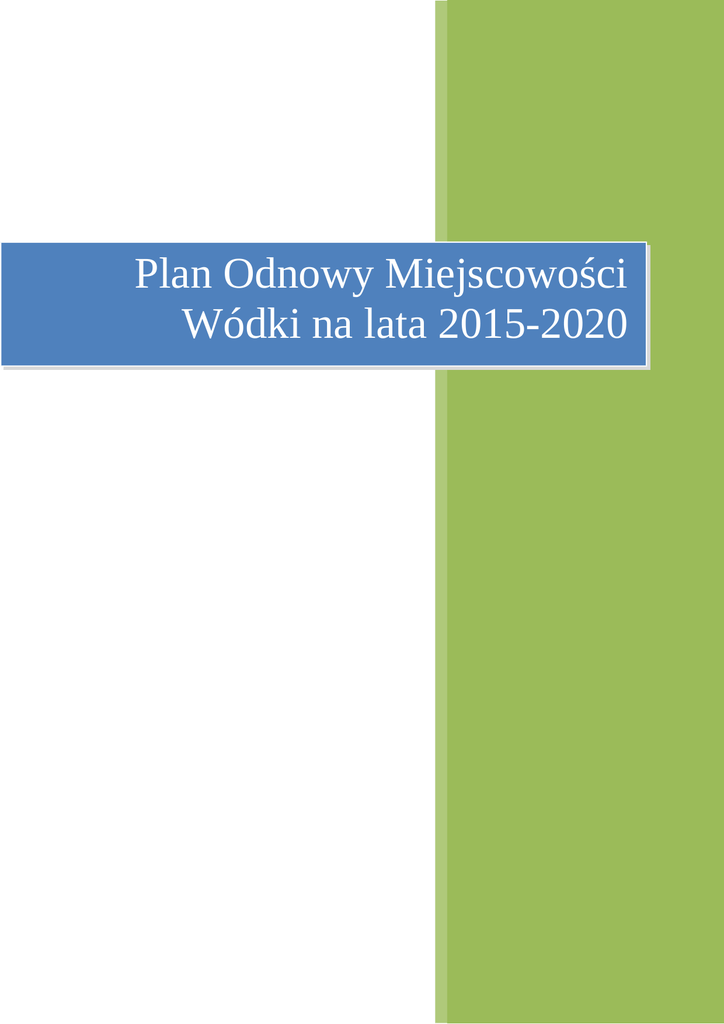 Plan Odnowy Miejscowości Wódki na lata 2015-2020 Plan Odnowy Miejscowości Wódki na lata 2015-2020 Spis treści 2 Plan Odnowy Miejscowości Wódki na lata 2015-2020 Wstęp Plan Odnowy Miejscowości to dokument zawierający strategię rozwoju miejscowości czy sołectwa na kilka lat. Jego znaczenie dla rozwoju lokalnego jest tak samo duże, jak w przypadku strategii rozwoju regionów czy kraju. Oczywiście, ze względu na zmieniające się warunki otoczenia, Plan ten należy aktualizować. Ważne jednak, aby przy tworzeniu zarówno pierwotnego dokumentu, jak i jego aktualizacji, aktywnie brali udział mieszkańcy danej jednostki. To oni bowiem najlepiej wiedzą, jakie są ich potrzeby, priorytety rozwojowe, ale także, jakimi zasobami dysponują. Plany składają się z kilku części: charakterystyki miejscowości, z której wynika inwentaryzacja zasobów jednostki. Na tej podstawie zaś można stworzyć analizę SWOT, pozwalającą zidentyfikować słabe i mocne strony oraz szanse i zagrożenia dla rozwoju miejscowości. Określenie niedostatków pozwala zaś stwierdzić, jakie inwestycje należy przeprowadzić. Warto tu jednak zauważyć, że nie są to jedynie inwestycje infrastrukturalne, ale także w infrastrukturę społeczną, pozwalające na zintegrowanie społeczności lokalnej oraz włączenie jej do dbania i działania na rzecz rozwoju i wzrostu konkurencyjności miejscowości. Widać tu również, że kolejne części Planów Odnowy wynikają z siebie i wzajemnie się ze sobą łączą, stąd też są one obligatoryjne. 3 Plan Odnowy Miejscowości Wódki na lata 2015-2020 1. Charakterystyka miejscowości Wódki to miejscowość leżąca na skraju powiatu wrzesińskiego, w gminie Września, nad Strugą Rudnik. Ryc. 1 Położenie Wódek na tle gminy Września. Źródło: https://www.google.pl/maps/ Liczba mieszkańców Wódek nie ulega większym zmianom. W 2004 r. mieszkały tu 104 osoby, później mieszkańców ubywało i w 2007 r. ich liczba wyniosła równo 100 osób, aby do 2009, 2011 i 2012 r. osiągnąć poziom 105. Jednak w 2013 r. znów w Wódkach mieszkało 100 osób. W XIII lub XIV w. w okolicach Grzybowa pojawiło się osadnictwo. Na tereny te przybyli przedstawiciele rodu Bylinów i Porajów. Ówczesne Grzybowo obejmowało jednak większe tereny - nie tylko samą wieś o tej nazwie, ale także przysiółki: Chrzanowice, Kleparz, Ołowne, Przecławowo, Rabieżyce, Robaszkowo, Starą Wieś, Witowo i Wódki. W późniejszych latach przysiółki dzieliły się na jeszcze mniejsze miejscowości, a następnie skonsolidowały się i obecnie tworzą tylko 3 wsie: Grzybowo, Kleparz oraz Wódki. Wracając jednak do początków miejscowości, 4 Plan Odnowy Miejscowości Wódki na lata 2015-2020 najprawdopodobniej właścicielem części Grzybowa (obecnych Wódek) był niejaki Wódka. W XVI w. wieś trafiła w ręce Grzymalitów Grzybowskich, którzy przyjęli nazwisko Wodeccy. Żyli tu także tzw. główni dziedzice: starsza linia Grzybowskich, Taczalscy, Drachowscy i Jaraczewscy. W 1778 r., kiedy zmarł Antoni Jaraczewski, Wódki zostały podzielone między jego spadkobierców i wierzycieli. Ostatecznie majątek podzielono między 6 osób, a same Wódki i tamtejszy dwór przypadły Zofii Jaraczewskiej. W XIX w. Wódki przeszły w ręce rodziny Cegielskich, a w 1914 r. – Brzeskich, właścicieli Mierzewa i Królewca (sąsiednie miejscowości). Erazm Brzeski za majątek o powierzchni 1 260 mórg zapłacił 1,8 mln marek. Po nim Wódki trafiły do syna Erazma, Witolda. Brał on udział w powstaniu styczniowym 1918-1919, a po powrocie skupił się na rozwoju majątku. Angażował się w rozwój lokalnego rolnictwa i przemysłu, m.in. będąc prezesem Rady Nadzorczej Spółdzielni Mleczarskiej we Wrześni, wiceprezesem wrzesińskich Zakładów Rolno-Przemysłowych, zasiadał w zarządach cukrowni i Banku Pożyczkowego. Ponadto był radnym sejmiku wojewódzkiego i powiatowego. W 1920 r. zdecydował się na odbudowę spalonego dworku w Wódkach. Prace budowlane prowadzono w latach 1922-1923 i obejmowały dołączenie nowego korpusu, budowę dworu w tzw. kostiumie polskim (parterowy z 4 kolumnami)1. W Wódkach znajdują się 3 obiekty wpisane do rejestru zabytków pod numerem 2196/A z 11. 06. 1990 roku: dwór z 1920 roku. Już od średniowiecza na wschodnich obrzeżach wsi wznoszono dwory drewniane, ale pierwszy murowany powstał w latach 30. XIX wieku. Po zakończeniu II wojny światowej w budynku zorganizowano biura spółdzielni rolniczej oraz mieszkania. W latach 90. został z kolei sprzedany Zakładom Organicznym Organika-Azot S.A. z siedzibą w Jaworznie. Firma odrestaurowała obiekt z przeznaczeniem na hotel i obecnie próbuje go sprzedać2; 1 http://wrzesnia.powiat.pl/aktualnosci/wodka-z-wodek-4578.html. 2 http://wrzesnia.powiat.pl/aktualnosci/wodka-z-wodek-4578.html. 5 Plan Odnowy Miejscowości Wódki na lata 2015-2020 Ryc. 2 Dwór w Wódkach Źródło: http://wrzesnia.powiat.pl/ park otaczający dwór, o powierzchni 2,05 ha, XIX-XX wiek. Rosną w nim stare drzewa, głównie akacje, dęby i jesiony; kaplica grobowa rodziny Cegielskich z 1936 r., usytuowana w parku otaczającym dwór. Ryc. 3 Kaplica rodziny Cegielskich Źródło: http://wrzesnia.powiat.pl/ 6 Plan Odnowy Miejscowości Wódki na lata 2015-2020 Wódki to miejscowość niepodłączona do sieci kanalizacyjnej. W wodę zasila ją Stacja Uzdatniania Wody w Grzybowie. Przez wieś biegnie jedna droga powiatowa o numerze 2163P prowadząca z Niechanowa do Grzybowa. W Wódkach znajduje się fragment tej drogi o długości 2,82 km. Ponadto są tu 3 drogi gminne: 288034P Wódki – Mierzewo (gmina Niechanowo); długość drogi w Wódkach – 100 m; klasa D; nawierzchnia jezdni – bitumiczna; 411530P Wódki – Stanisławowo; długość drogi - 2,58 km; kategoria L; nawierzchnia: bitumiczna na odcinku 560 m, brukowa na odcinku 800 m, tłuczniowa na odcinku 1,22 km; 411531P z Wódek w kierunku wsi Sobiesiernie; długo