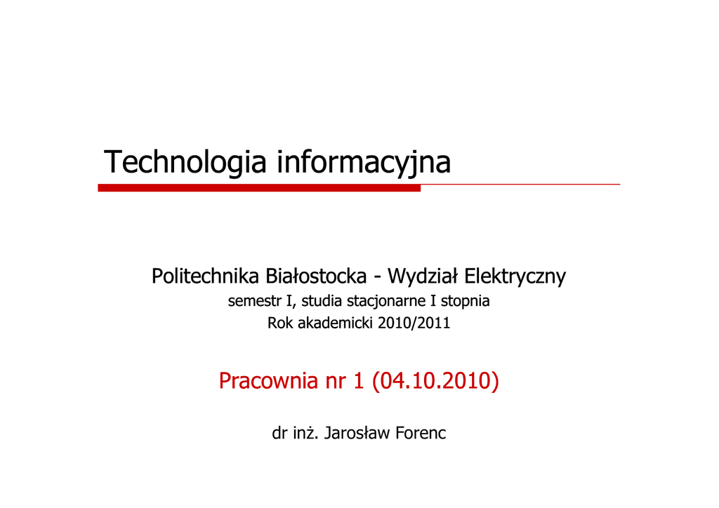 Technologia informacyjna - PB Wydział Elektryczny