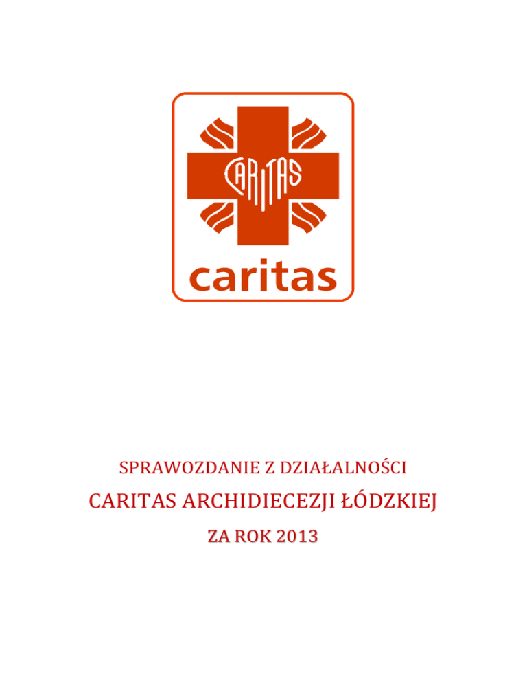 SPRAWOZDANIE Z DZIAŁALNOŚCI CARITAS ARCHIDIECEZJI ŁÓDZKIEJ ZA ROK 2013 MISJA CARITAS ARCHIDIECEZJI ŁÓDZKIEJ Caritas Archidiecezji Łódzkiej jest instytucją charytatywną Kościoła Katolickiego. Pomagamy każdemu potrzebującemu. Robimy to mądrze z szacunkiem i miłością miłosierną. Zmieniamy siebie i świat. I DZIAŁ ORGANIZACYJNY Głównym zadaniem Działu Organizacyjnego jest wspieranie działalności poszczególnych jednostek Caritas. Ponadto, realizuje bieżące działania w zakresie funkcjonowania administracyjnego Caritas. Szczegółowe działania realizowane w 2013 roku. 1. Koordynowano i przeprowadzono prace remontowo-porządkowe. 2. Koordynowano lub pomagano w organizacji spotkań świątecznych i okolicznościowych: spotkania z okazji Świąt Wielkanocnych; spotkania opłatkowego wolontariuszy kadry kolonijnej; uroczystości odpustowe w siedzibie Caritas; 3. Koordynowano akcję Kolonie letnie Caritas 2013. 4. Koordynowano akcję Turnusy rehabilitacyjne Caritas 2013. 5. Pomoc w przygotowaniach do uroczystości Dnia Dziecka, Święta Eucharystii, Wigilii, akcji Serce na gwiazdkę. 6. Dział Organizacyjny koordynował pomoc w zakresie: a. w 2013 roku z pomocy finansowej ogólnej (dofinansowanie do aparatu słuchowego, opału, zapomoga ogólna itp.) skorzystało 6 osób na kwotę 1673 zł. b. z dofinansowania do kolonii skorzystało 12 osób na kwotę 7080 zł c. z dofinansowania do turnusu rehabilitacyjnego skorzystały 2 osoby na kwotę 496 zł. d. z dofinansowania do leków skorzystało 101 osób na łączną kwotę 8235 zł. II A DZIAŁ POMOCY CHARYTATYWNEJ PUNKT POMOCY CHARYTATYWNEJ I KUCHNIA SPOŁECZNA Głównym zadaniem Punktu Pomocy Charytatywnej (PPCh) i Kuchni Społecznej jest udzielanie pomocy doraźnej osobom najuboższym. Są to bezrobotni, bezdomni, chorzy i niepełnosprawni, mający niskie dochody, rodziny wielodzietne, osoby samotnie wychowujące dzieci, dotknięte problemem uzależnienia (alkohol, narkotyki) lub współuzależnienia, ofiary klęsk żywiołowych, opuszczający zakłady karne. 1. Od kilku lat obserwujemy systematyczny wzrost liczby osób korzystających z różnych form pomocy PPCh, zwłaszcza wśród osób bezrobotnych, niepełnosprawnych, bezdomnych i opuszczających zakłady karne a także rodzin wielodzietnych i rodziców samotnie wychowujących dzieci. Staramy się, aby oferta proponowanych przez nas form pomocy, wyczerpywała oczekiwania i potrzeby naszych podopiecznych, ale też w jak największym stopniu pomagała w ich usamodzielnianiu i przeciwdziałała dalszej deprywacji. 2. Szczegółowe działania realizowane w 2013 roku: a. Realizowano działania na rzecz podopiecznych PPCh i Kuchni Społecznej: rozpoznawano faktyczne potrzeby osób zgłaszających się po pomoc i kwalifikowano ich do określonych świadczeń; wydawano pomoc rzeczową w postaci :odzieży, środków czystości, sprzętu AGD, środków higienicznych, zabawek, wyprawek szkolnych, opału, mebli, środków opatrunkowych i leków; wydawano paczki żywnościowe; kierowano na gorący posiłek; wydawano codziennie ciepły posiłek w postaci zupy z wkładką mięsną oraz paczki żywnościowej na dni wolne od pracy; organizowano zbiórki żywności w marketach; zorganizowano obchody „Dnia walki z ubóstwem” realizowano projekty na rzecz podopiecznych (np. pomocy żywnościowej PEAD, dotyczące pomocy osobom bezdomnym, wychodzącym z bezdomności, niepełnosprawnym oraz ich rodzinom, a zwłaszcza dzieciom); zorganizowano pielgrzymkę do Częstochowy dla osób bezdomnych, oraz wolontariuszy i podopiecznych w tym również podopiecznych Parafialnych Zespołów Caritas; rozwijano grupę wsparcia AA „RAZEM”; umożliwiano podopiecznym korzystanie z prysznica i pralki; wydawano paczki okolicznościowe (z okazji Świąt Wielkiej Nocy i Bożego Narodzenia); udzielano porad prawnych i socjalnych, pomagano w załatwianiu trudnych spraw w innych instytucjach; ściśle współpracowano z Ośrodkami Aktywizacji Zawodowej i Społecznej w celu aktywizacji zawodowej podopiecznych; udzielano na bieżąco informacji o nowych projektach, akcjach i działaniach prowadzonych przez Caritas na rzecz podopiecznych; przygotowano projekt pralni społecznej – przedstawiony do budżetu obywatelskiego; osobom starszym i niepełnosprawnym – w ramach realizowanego projektu - zaproponowano wspólne wyjście do teatru i kina; w ramach realizacji projektu dotyczącego prowadzenia mediacji – proponowano taka formę pomocy w sytuacjach konfliktu między lokatorem a administracja, zwłaszcza w sytuacjach zadłużenia; zaproszono podopiecznych na wigilię.. b. Realizowano działania na rzecz wolontariuszy pracujących w PPCh: zwiększono zaangażowanie podopiecznych w wolontariat – w 2013 roku w PPCh pomagało 15 osób; c. Realizowano działania zwiększające efektywność pracy PPCh: pozyskiwano sponsorów i darczyńców; nawiązano lub kontynuowano współpracę z instytucjami: MOPS, parafie, Parafialne Zespoły Charytatywne Caritas, Szkolne Koła Caritas, zakłady pracy – ofiarodawcy, poradnie leczenia uzależnień, schroniska i noclegownie, sądy rejonowe, kancelarie adwokackie, Dom Samotnej Matki, szpitale, policja, straż miejska, fundacje i stowarzyszenia, Wyższe Seminarium Duchowne, zgromadzenia zakonne, Centrum Służby Rodzinie, Konwent Bonifratrów, .i inne. w ramach realizacji projektów kontynuowano wcześniejsze i podejmowano nowe działania: wyprawka szkolna dla dzieci oraz zakup opału, wyjście do teatru i kina, mediacje; dwukrotnie /w marcu i w grudniu / przeprowadzono akcję zbiórki żywności w sklepach sieci Biedronka i innych, na terenie całej Archidiecezji; przeprowadzono akcję „Tornister pełen uśmiechu”. 3. Osiągnięto wymierne rezultaty realizowanych działań: a. objęto pomocą ogółem 10 800 osób z terenu całej archidiecezji; b. wydano każdej rodzinie po kilka paczek ze środkami chemicznymi, odzieżą nową i używaną, sprzętem gospodarstw