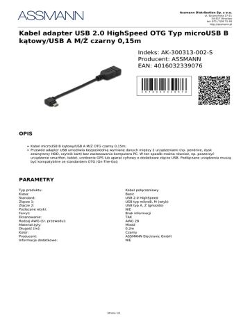 Karta produktu: Kabel adapter USB 2.0 HighSpeed OTG