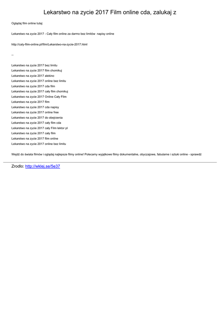 Lekarstwo na zycie 2017 Film online cda, zalukaj z