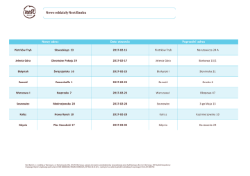 Nowy adres Data otwarcia Poprzedni adres