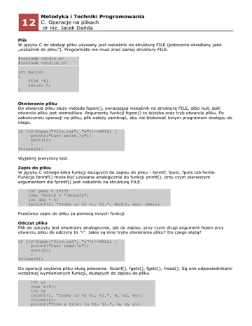 „wskaźnik do pliku”). Programista nie musi znać samej struktury FILE.