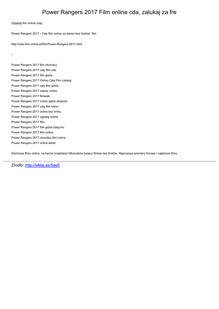 Power Rangers 2017 Film online cda, zalukaj za fre Oglądaj film online tutaj: Power Rangers 2017 - Cały film online za darmo bez limitów film http://caly-film-online.pl/film/Power-Rangers-2017.html -Power Rangers 2017 film chomikuj Power Rangers 2017 cały film cda Power Rangers 2017 film gdzie Power Rangers 2017 Online Cały Film zalukaj Power Rangers 2017 cały film gdzie Power Rangers 2017 napisy online Power Rangers 2017 filmweb Power Rangers 2017 online gdzie obejrzeć Power Rangers 2017 cały film lektor Power Rangers 2017 online bez limitu Power Rangers 2017 ogladaj online Power Rangers 2017 film Power Rangers 2017 film gdzie obejrzec Power Rangers 2017 film online Power Rangers 2017 chomikuj film online Power Rangers 2017 online lektor Darmowe filmy online, na karcie znajdziesz kilkanaście tysięcy filmów bez limitów. Najnowsze premiery kinowe i najtańsze filmy Zrodlo: http://wklej.se/5ae5