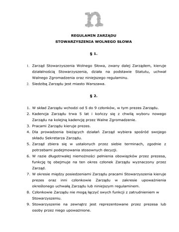 Regulamin Zarzadu - Stowarzyszenie Wolnego Słowa