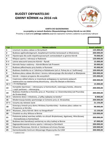 BUDŻET OBYWATELSKI GMINY KÓRNIK na 2016 rok